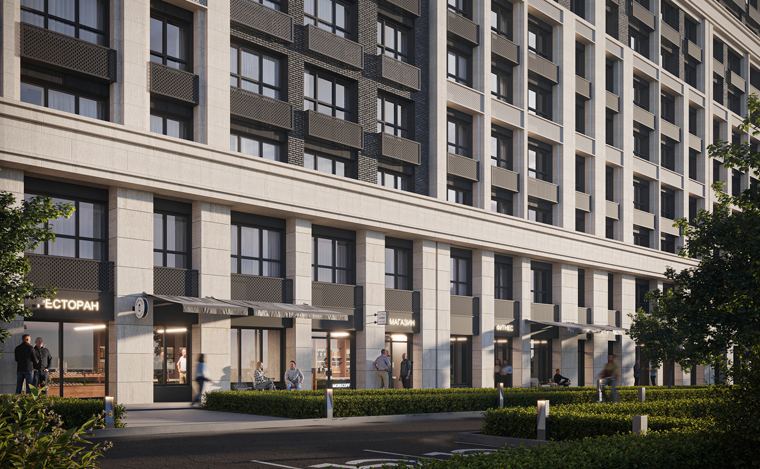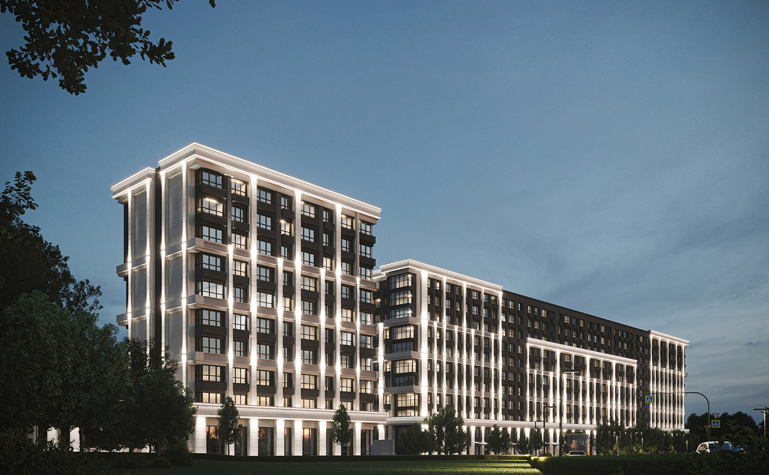 Жилой комплекс представляет собой современный неоклассический проект, возведенный по технологии кирпично-монолитного строительства с вентилируемыми фасадами из керамогранита.