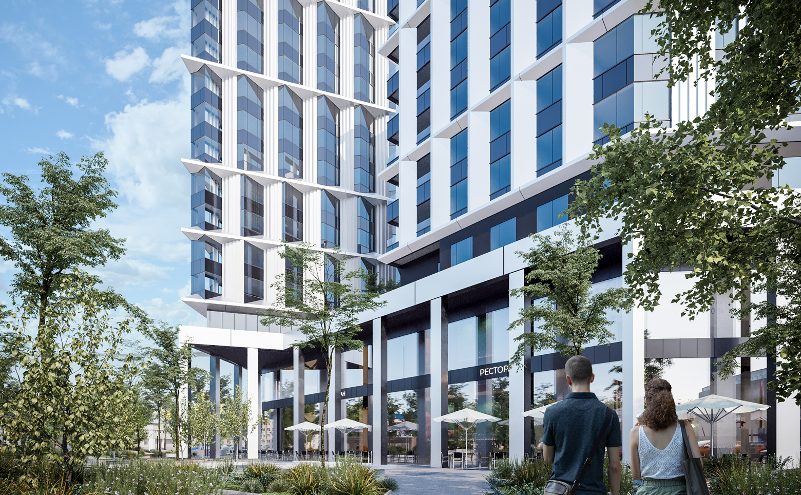 На территории комплекса расположен маркет-холл, бизнес-центр, медицинские учреждения, места для прогулок и занятий спортом, культурно-образовательные зоны. Для автовладельцев предусмотрен наземный и подземный паркинг.