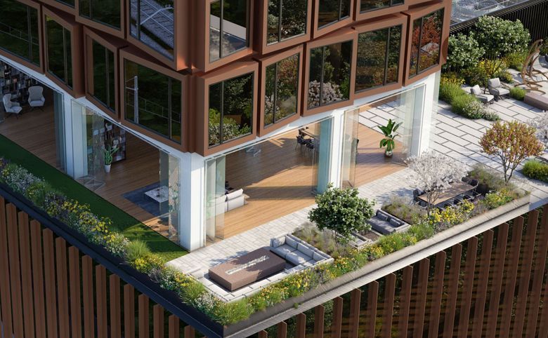 Комплекс прдставляет собой авторский проект высотой 17 этажей от бюро Цимайло Ляшенко и Партнеры. Нижняя часть фасада здания имеет строгую и регулярную сетку из металлических ламелей. Верхняя часть имеет более живую структуру: пластина разделена на квадратные ячейки, каждая из которых — это отдельное панорамное окно. Все ячейки повернуты в разные стороны друг от друга, что создает мерцающий эффект за счет солнечных бликов и преломления света. В проекте предусмотрены постаматы для курьерской доставки, велопарковка, снижение уровня светового загрязнения с ориентацией на циркадные ритмы, умный дисплей в лифтах с информацией о локальных объектах инфраструктуры, мониторингом транспортной ситуации и качества среды.
