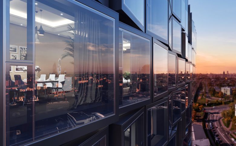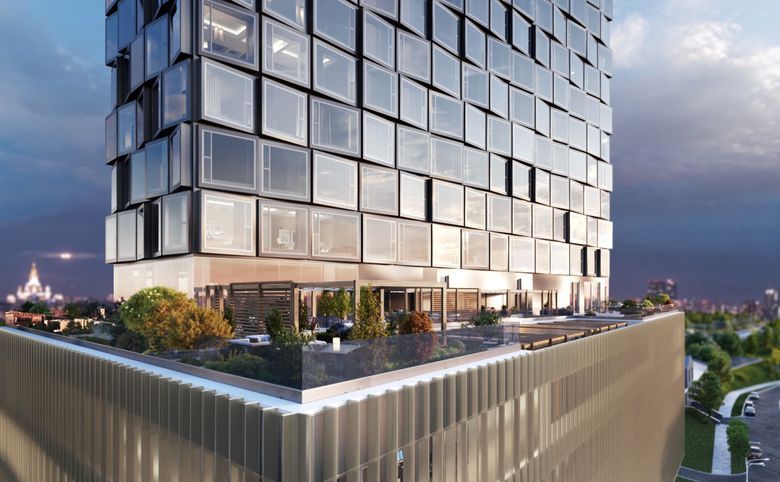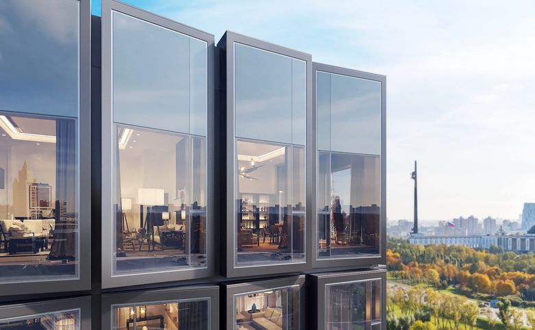 Нижняя часть здания отведенная под офисы, а верхняя часть — апартаменты. Всего предложено 77 номеров. Сдаются они с подчистовой отделкой, панорамными окнами и высотой потолков 3,2 метра. Из окон открываются прекрасные виды на Парк Победы и Воробьевы горы.