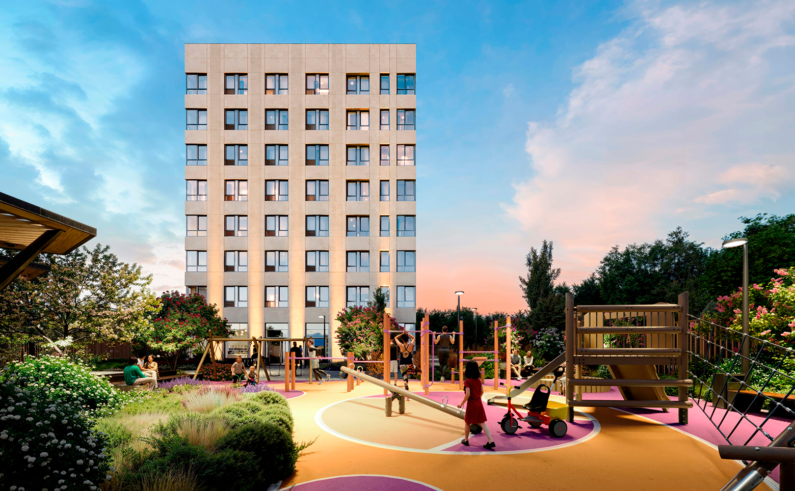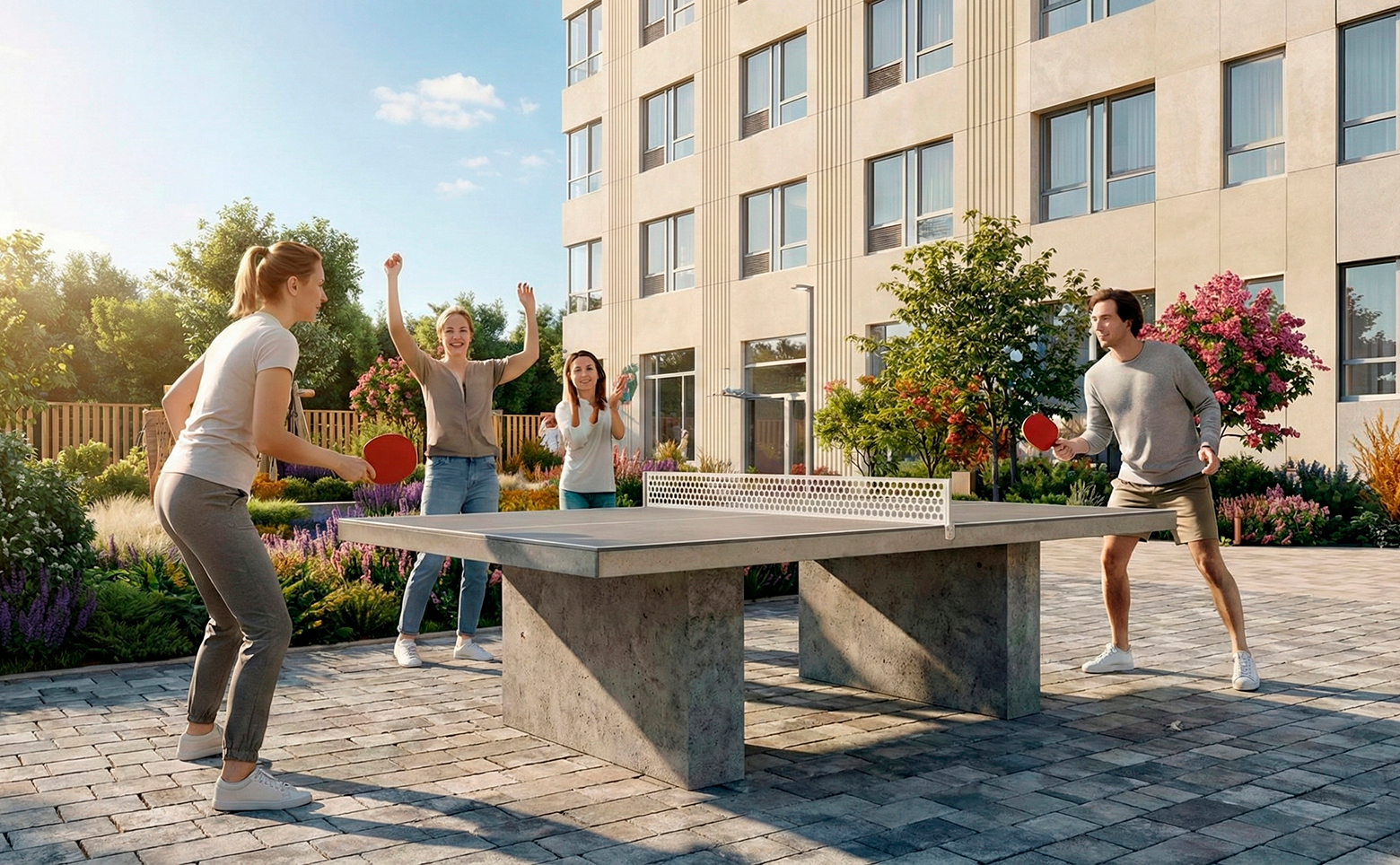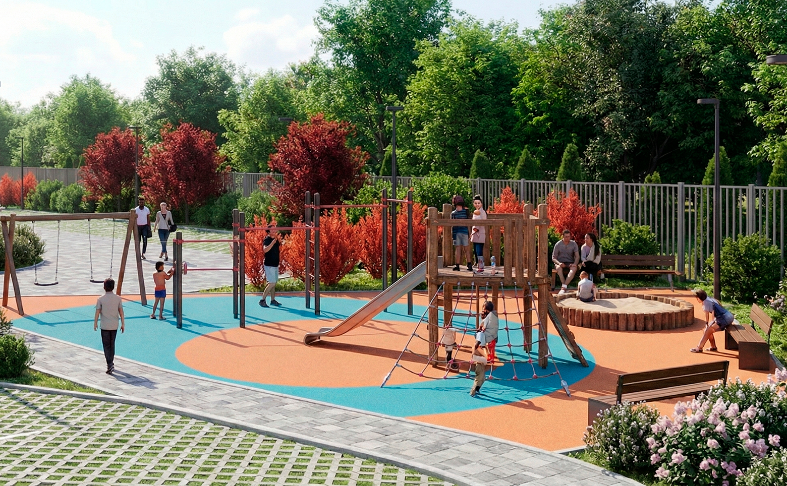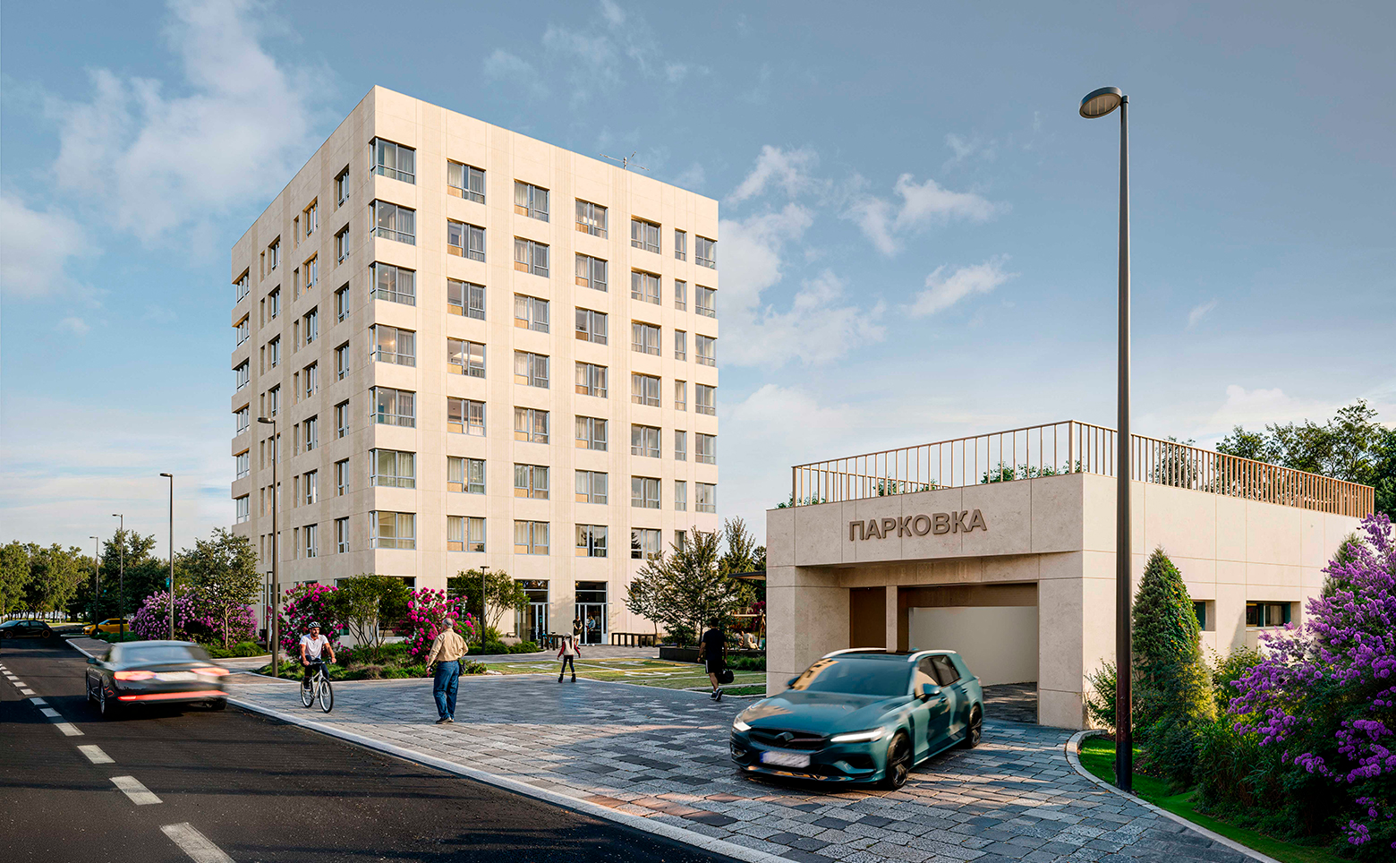 Территория комплекса закрыта и благоустроена: оборудованы предусмотрены детская и спортивная площадки, зоны отдыха и приватный парк с газонами, тенистыми деревьями, цветниками и разноуровневым освещением. Организованы площадка для занятий йогой, зона настольного тенниса, большие уличные шахматы, перголы с навесами и аллея арт-объектов. Доступ на территорию и в здание осуществляется по умной системе с применением Face ID. На первом этаже размещены коммерческие помещения, также предусмотрены велопарковки и подземный паркинг с зарядными станциями для электромобилей. По всей территории ведется видеонаблюдение.
