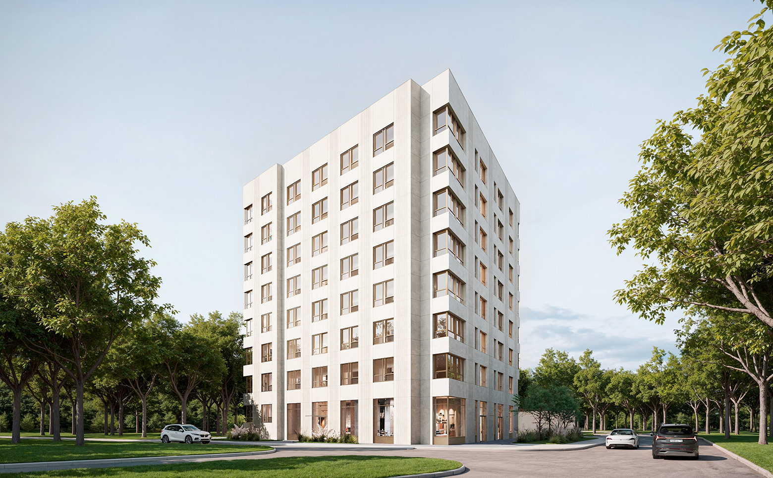 Клубный дом высотой 8 этажей выполнен по монолитной технологии с комбинированной отделкой фасадов и архитектурной подсветкой, которая подчеркивает выразительность здания в вечернее время. В здании оборудован пассажирский лифт с доступом в подземный паркинг, реализована безбарьерная среда. В лобби оборудована лаунж-зона, работает консьерж-сервис, предусмотрены системы хранения, колясочные и лапомойки для домашних животных.
