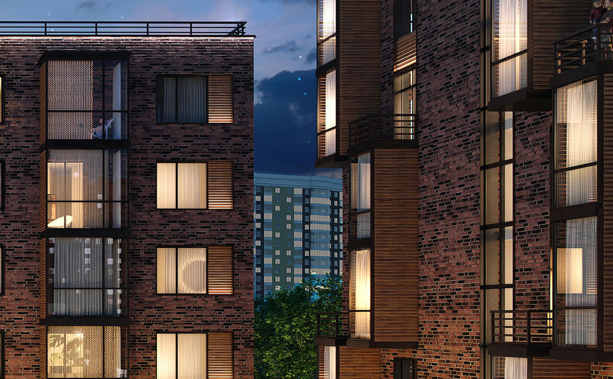 Территория комплекса благоустроена: имеется закрытый внутренний двор с ландшафтным озеленением и уголками для отдыха, воркаут и игровая зона для детей для прогулок и активного времяпрепровождения. Для автовладельцев предусмотрен подземный паркинг.