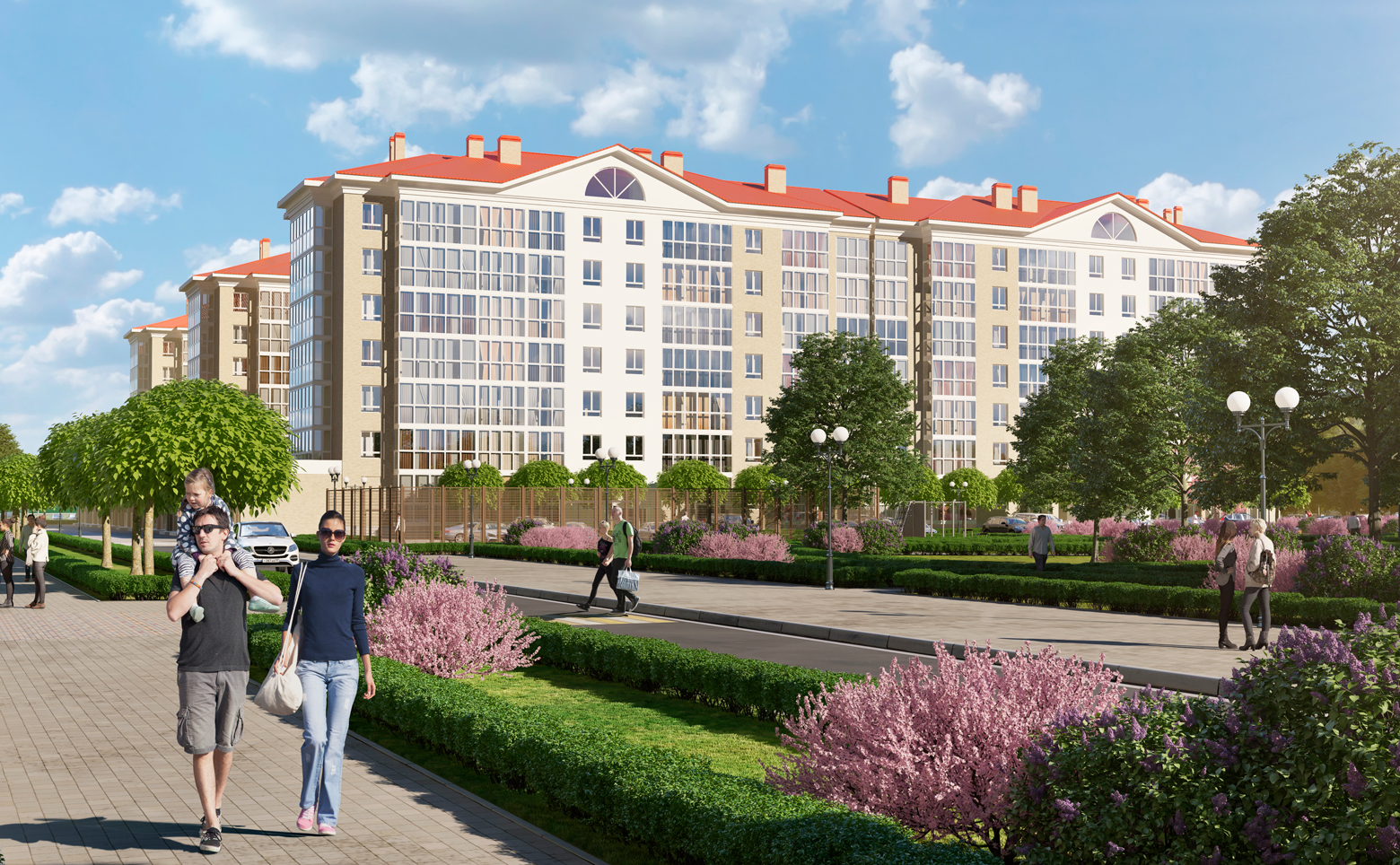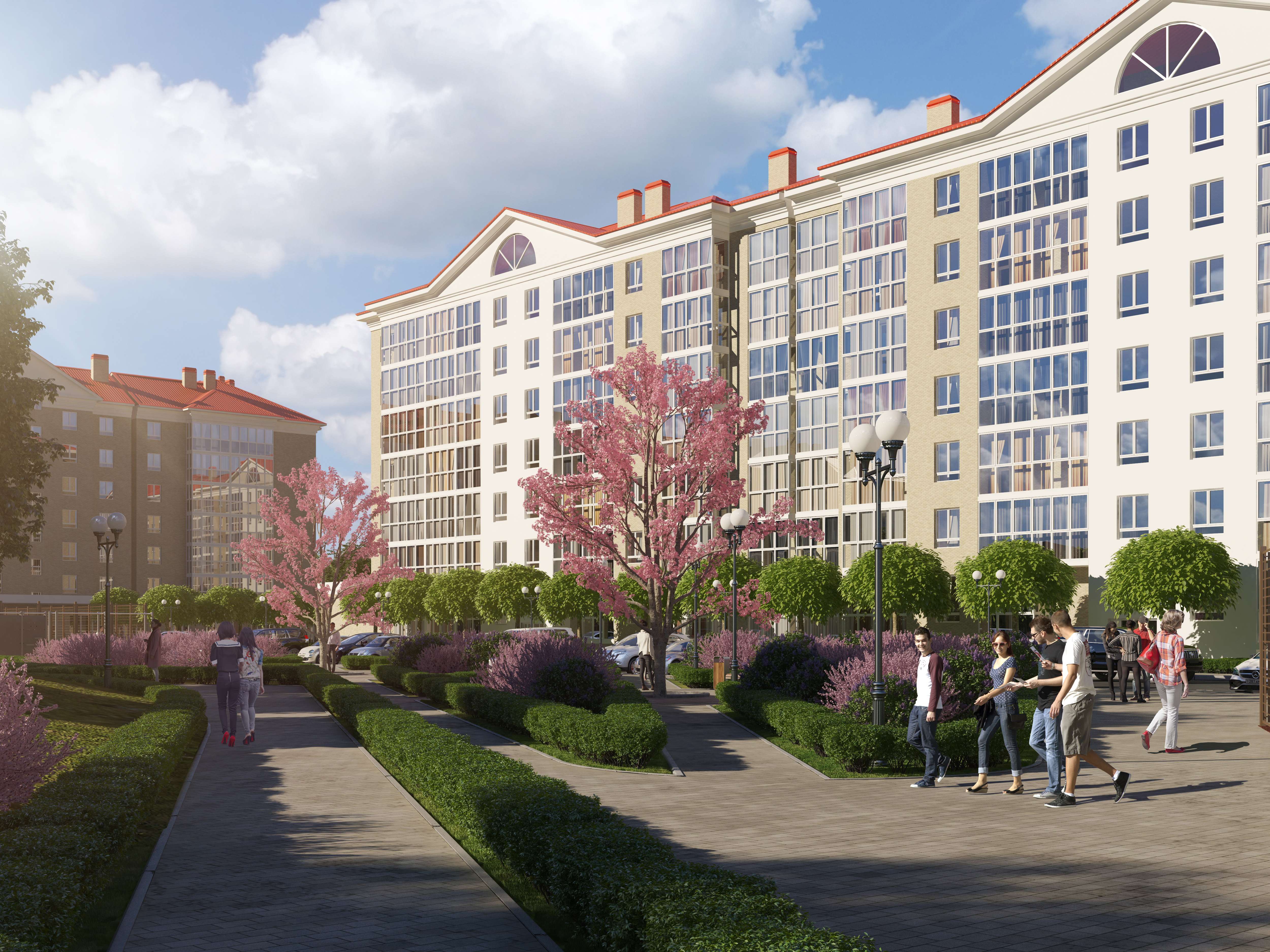 Проект включает в себя 4 корпуса в едином архитектурном стиле. Дома спроектированы в классическом европейском стиле с использованием светло-бежевого кирпича в облицовке фасадов. Входные группы каждого дома оборудованы остекленными дверьми витражного типа с чиповыми замками и домофоном. На всей территории комплекса разработана безбарьерная среда. Также все подъезды оборудованы автоматическими подъемниками для людей с ограниченными возможностями.