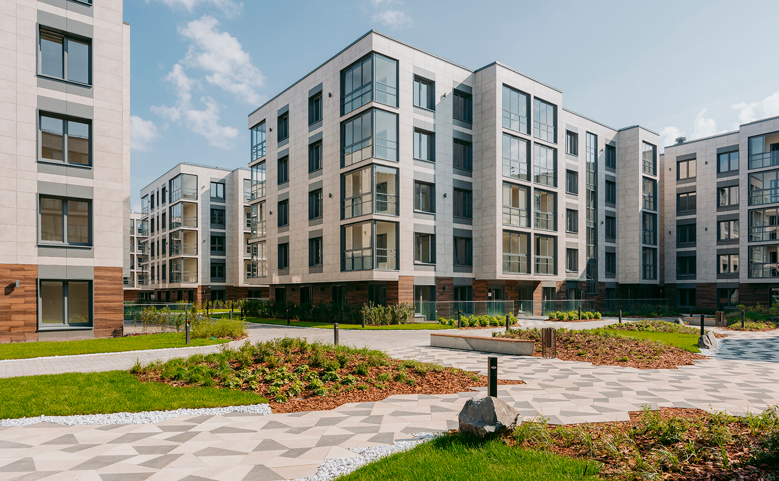 Территория проекта благоустроена в традициях европейских загородных объектов. Концепция разработана студией ландшафтного дизайна DEREVO PARK. На закрытой территории ЖК спроектирована набережная, променад «Зеленый берег» с арт-объектами. Все дворы обращены к полноводному каналу и парку Дубки. В комплексе апартаментов предусмотрен охраняемый подземный паркинг. Здесь же размещаются индивидуальные кладовые. Подземный паркинг спроектирован с учетом современных требований к безопасности. А в часть помещений на первых этажах предусмотрена для размещения объектов собственной инфраструктуры.