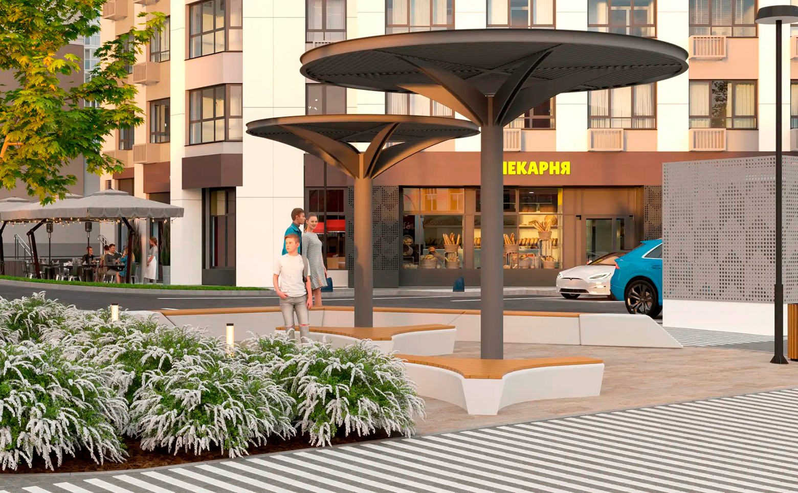 Дворовое пространство разделено на 3 функциональные зоны: территория для прогулок и отдыха площадью 2 га, детские площадки и воркаут-зона, парклет перед домом с навесом, озеленением, освещением и местами для отдыха и общения. За порядком следит профессиональная сервисная компания. Для жителей предусмотрен бесконтактный доступ с помощью электронных ключей или мобильного приложения, для гостей — вход по временному коду. Доступ в дом, к лифтам, двору и паркингу контролируется, ведется круглосуточное видеонаблюдение и охрана. В составе проекта предусмотрена коммерческая инфраструктура.
