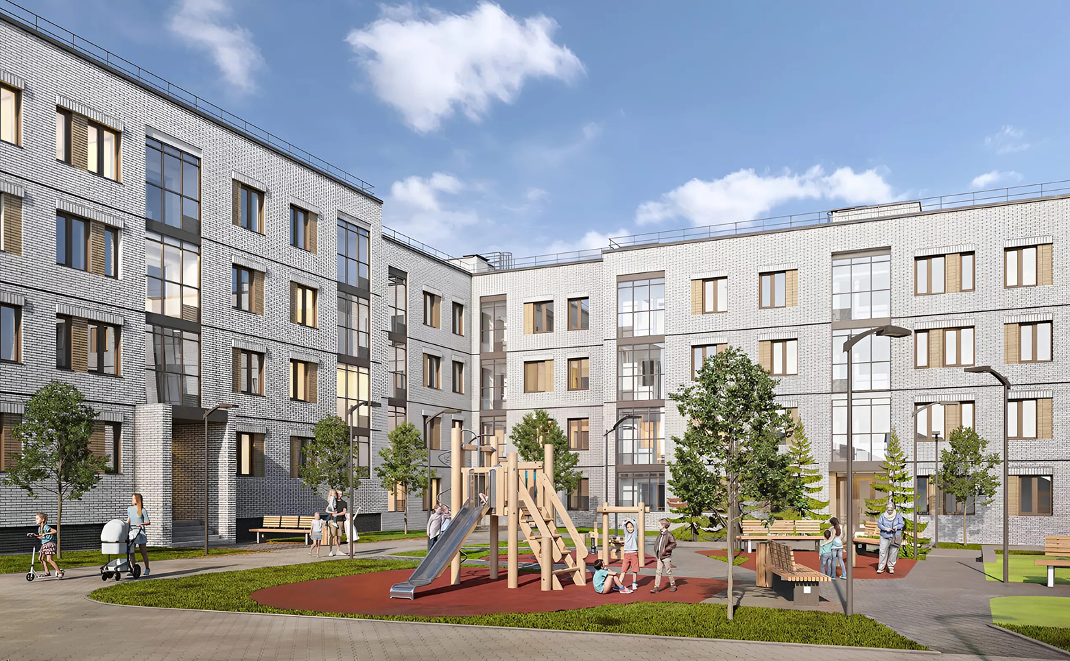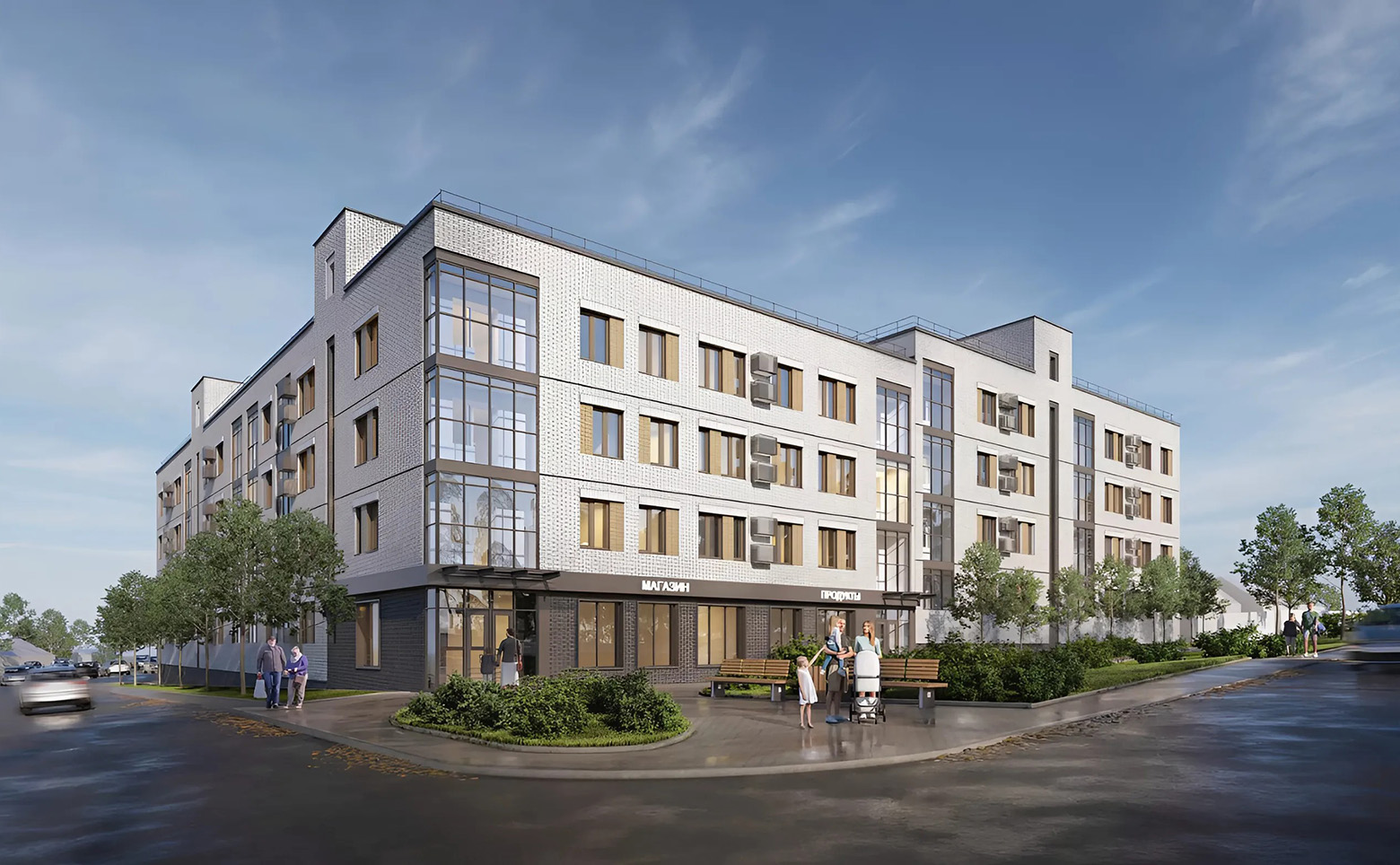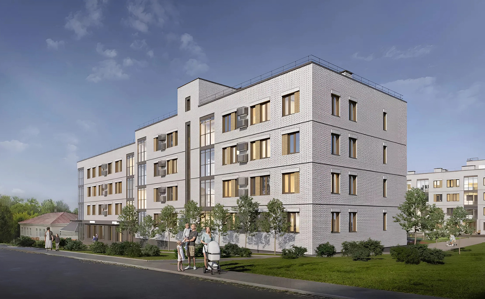 Проект представляет собой малоэтажный комплекс комфорт-класса, который состоит из 2 корпусов высотой в 4 этажа. Современные здания возведены по кирпично-монолитной технологии, с комбинированными фасадами. Комплекс оснащен безбарьерными входными группами.