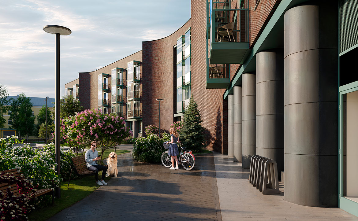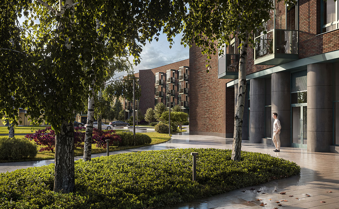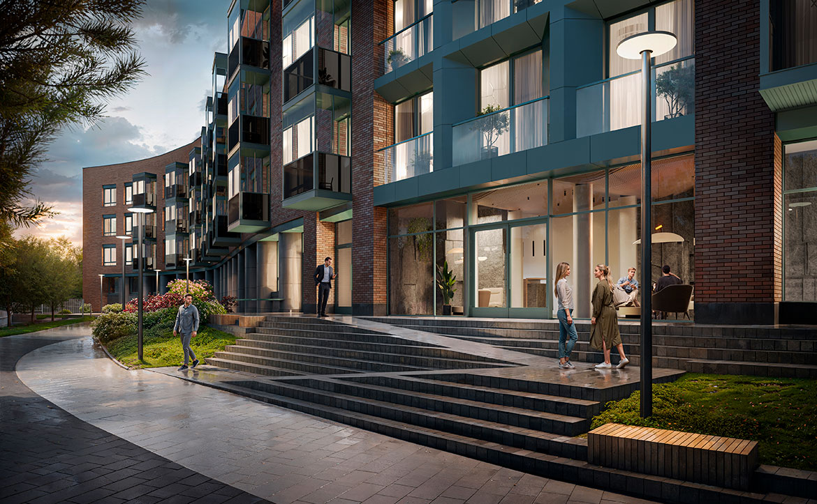 «Цвет Зеленогорска» — камерный бизнес-класс в Курортном районе Петербурга. В приватном дворе у Жемчужного ручья можно общаться с близкими в деревянном амфитеатре, созерцать гармонию природы в воздушной перголе или наблюдать, как ребенок познаёт мир, играя на площадке. Лобби украсит капельный водопад «Скала».