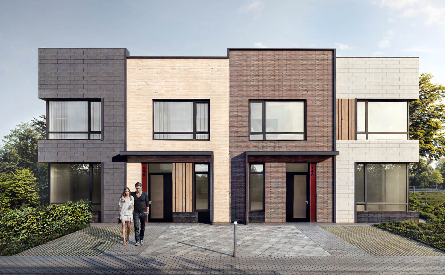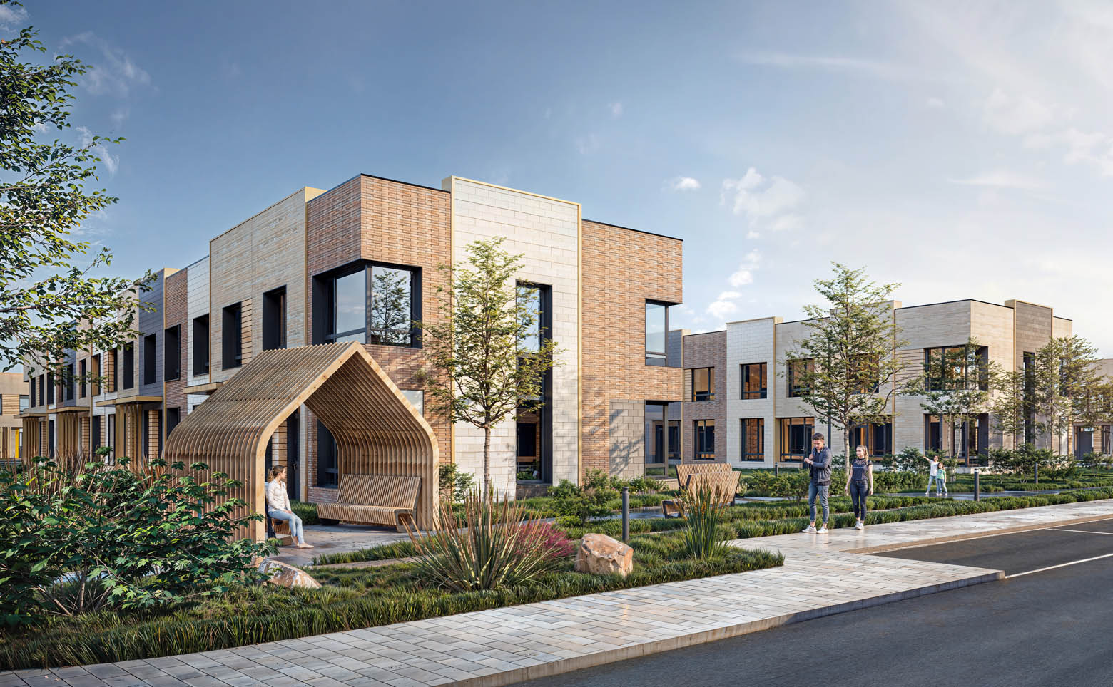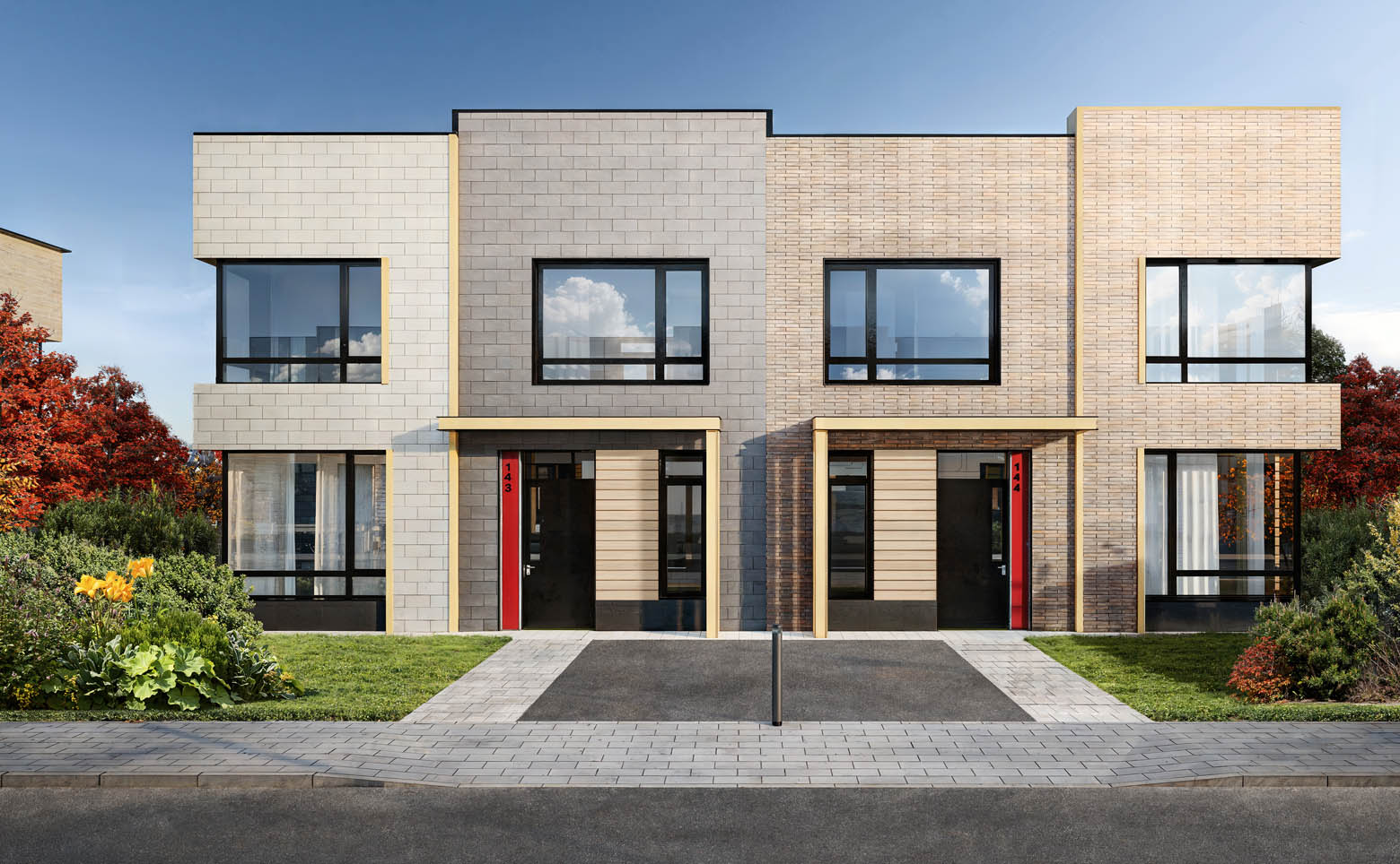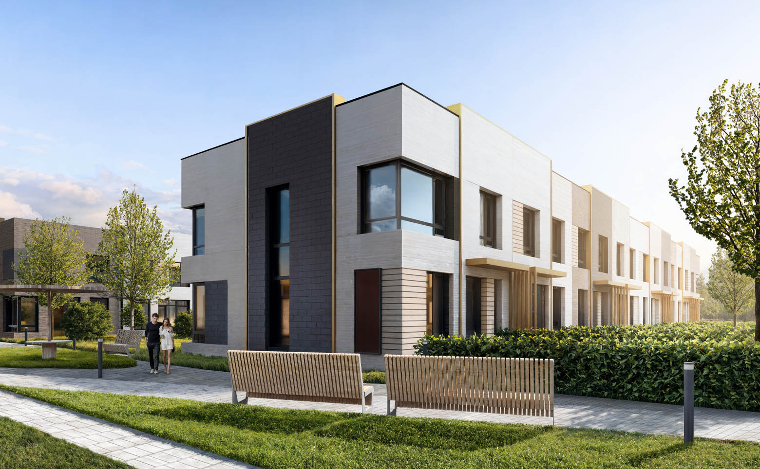 В проекте представлены таунхаусы с 3–5 спальнями. В домах предусмотрены кухни-гостиные, мастер-спальни и гардеробные. Помещения оснащены увеличенными окнами, высота потолков составляет 3,2 м. Жилье передается без стен.
