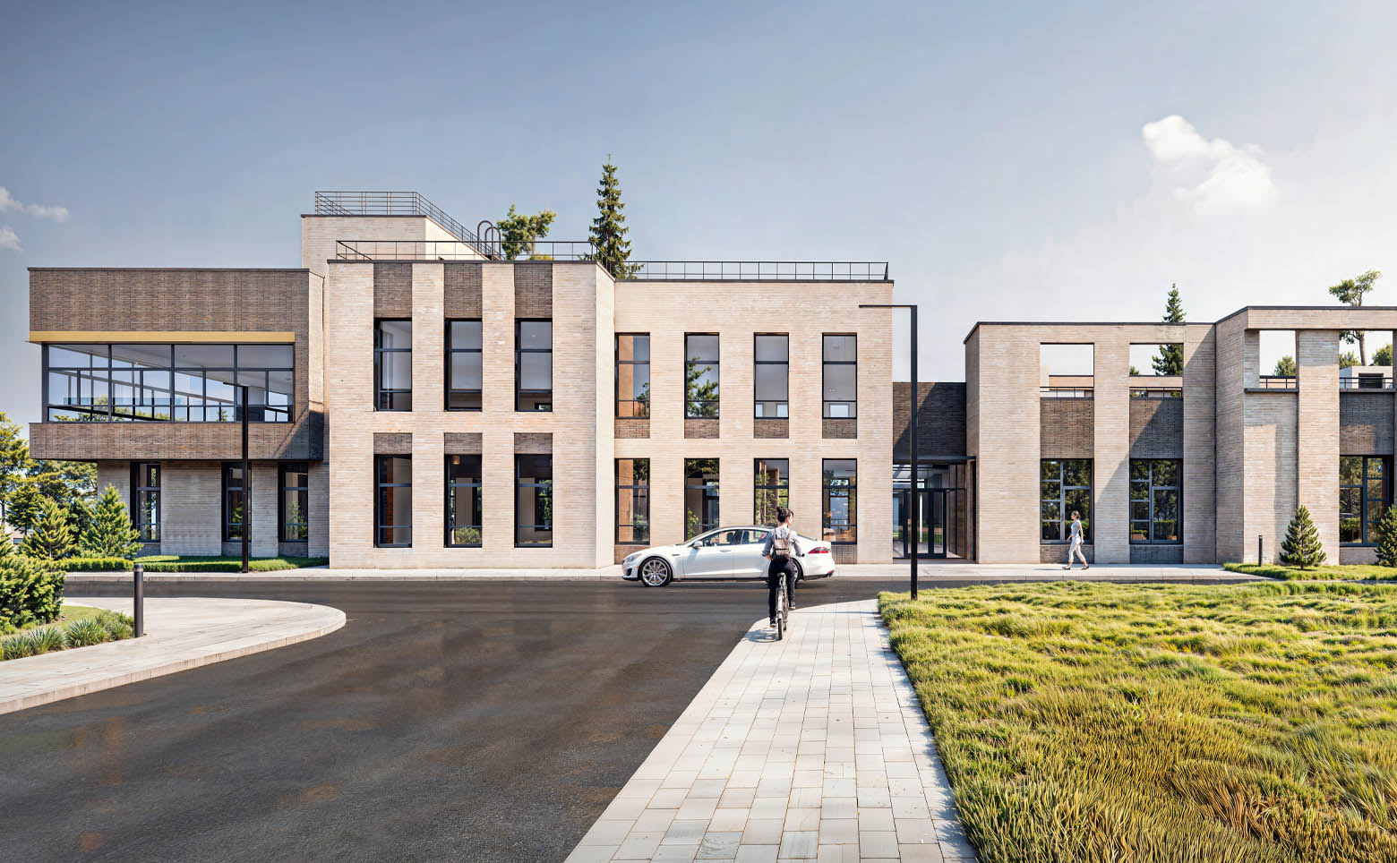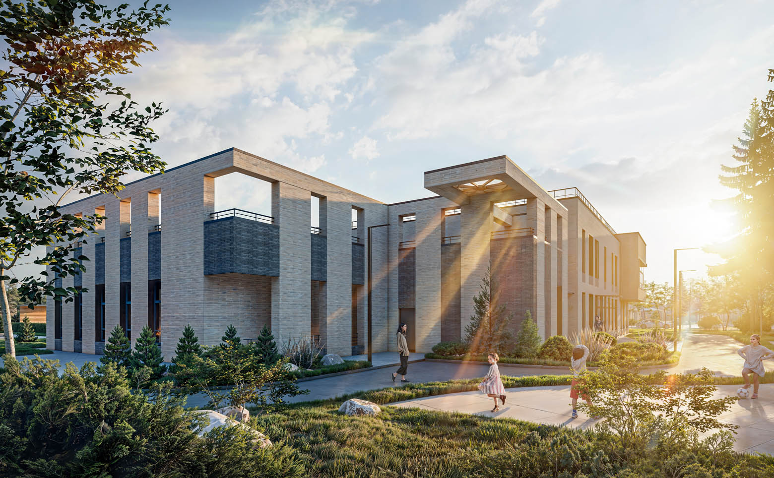 Территория закрыта и благоустроена, организованы безопасные маршруты, пространства для прогулок и детские зоны. Оборудованы места для отдыха, спортивные площадки и стоянка для авто. В составе комплекса предусмотрен детский сад и МФЦ.