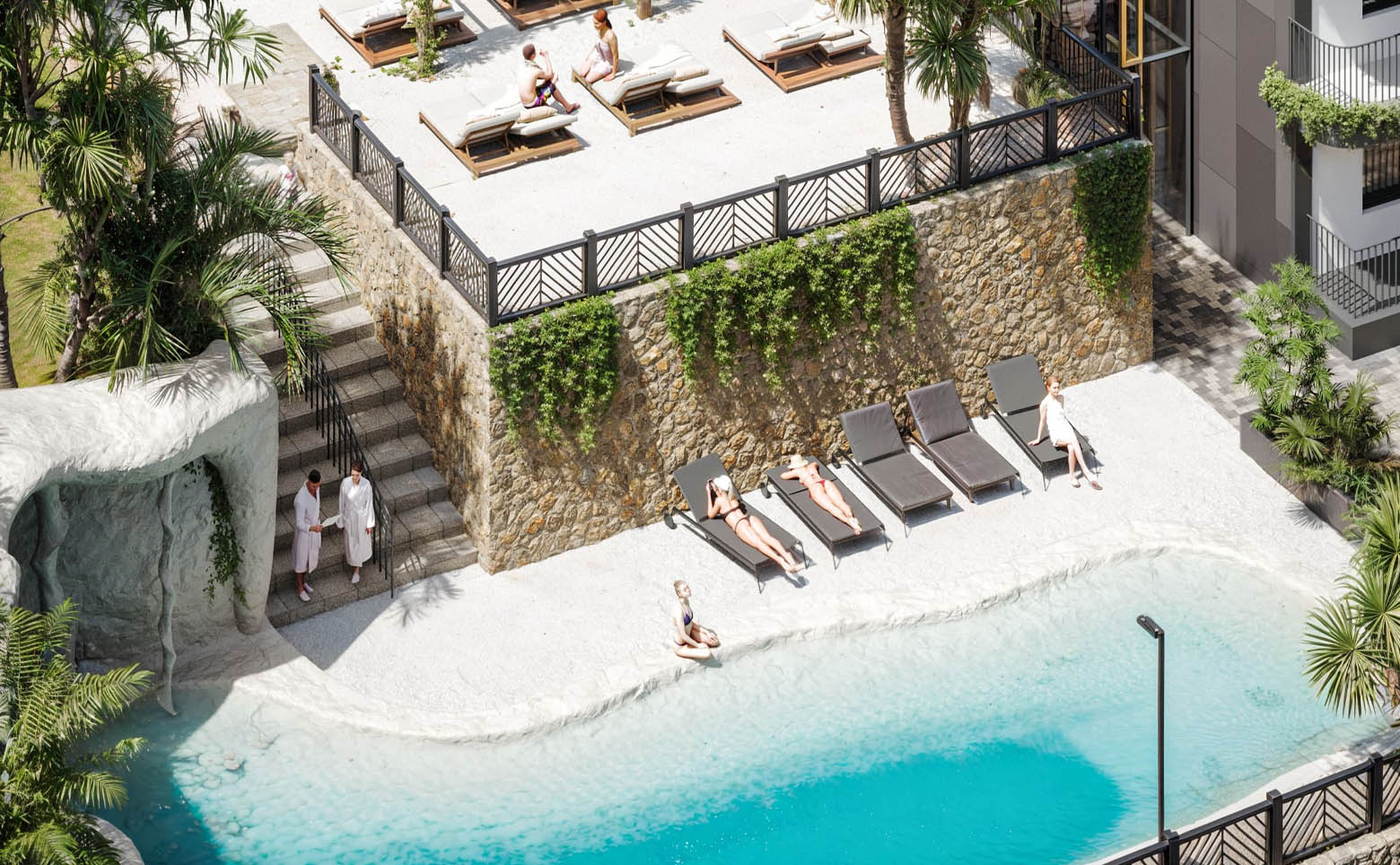 Для резидентов доступен широкий спектр инфраструктуры: ресепшен и консьерж-служба, 2 бассейна и детская аквазона, зоны отдыха и детская площадка. На территории расположены спа-зона с купелью фурако, зона патио, ресторан со шведским столом, конференц-зал, коворкинг и кинотеатр. Предусмотрено ландшафтное озеленение и стоянка для авто.