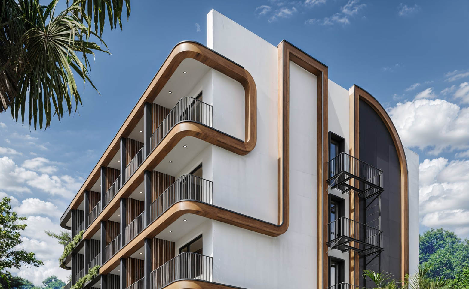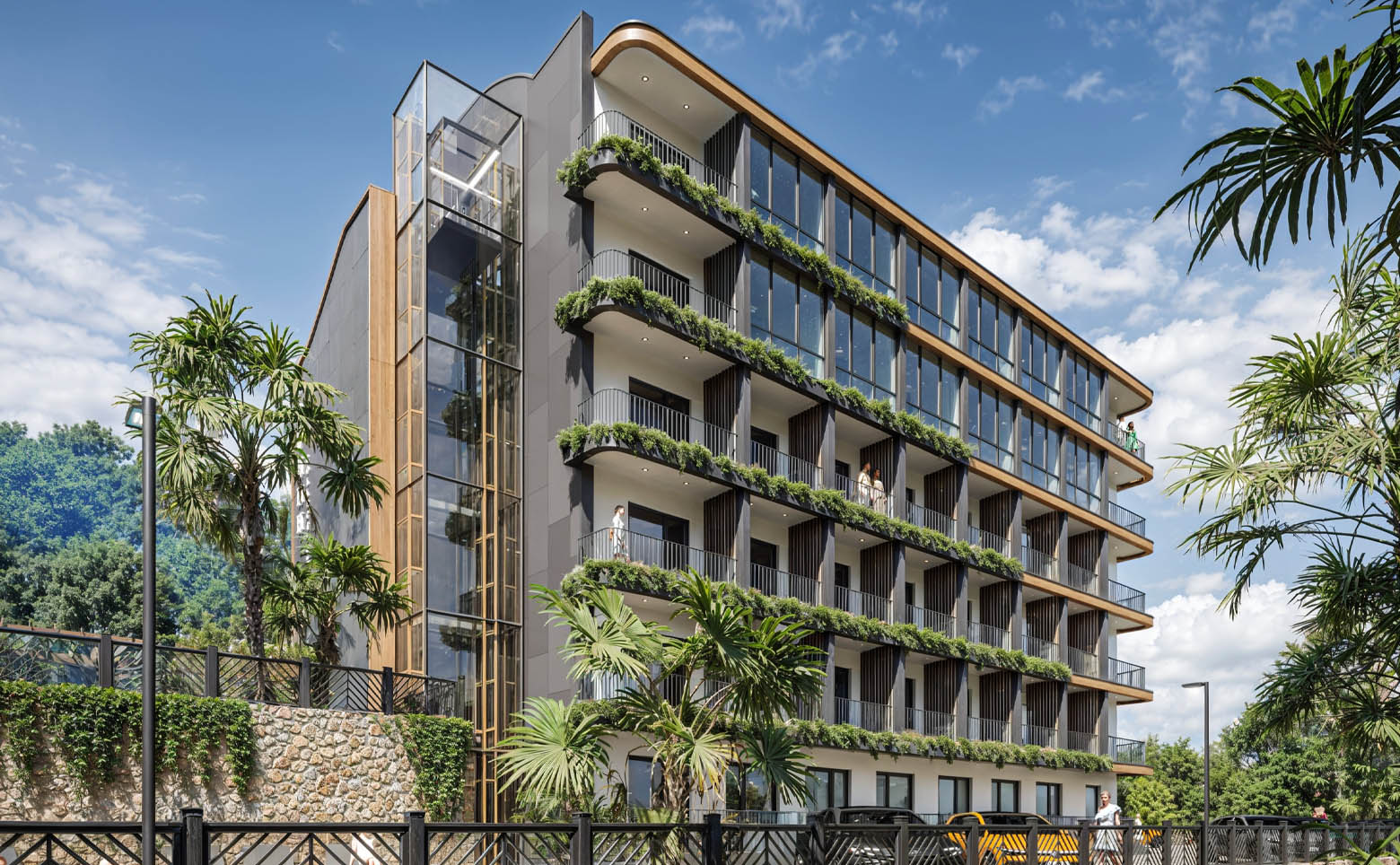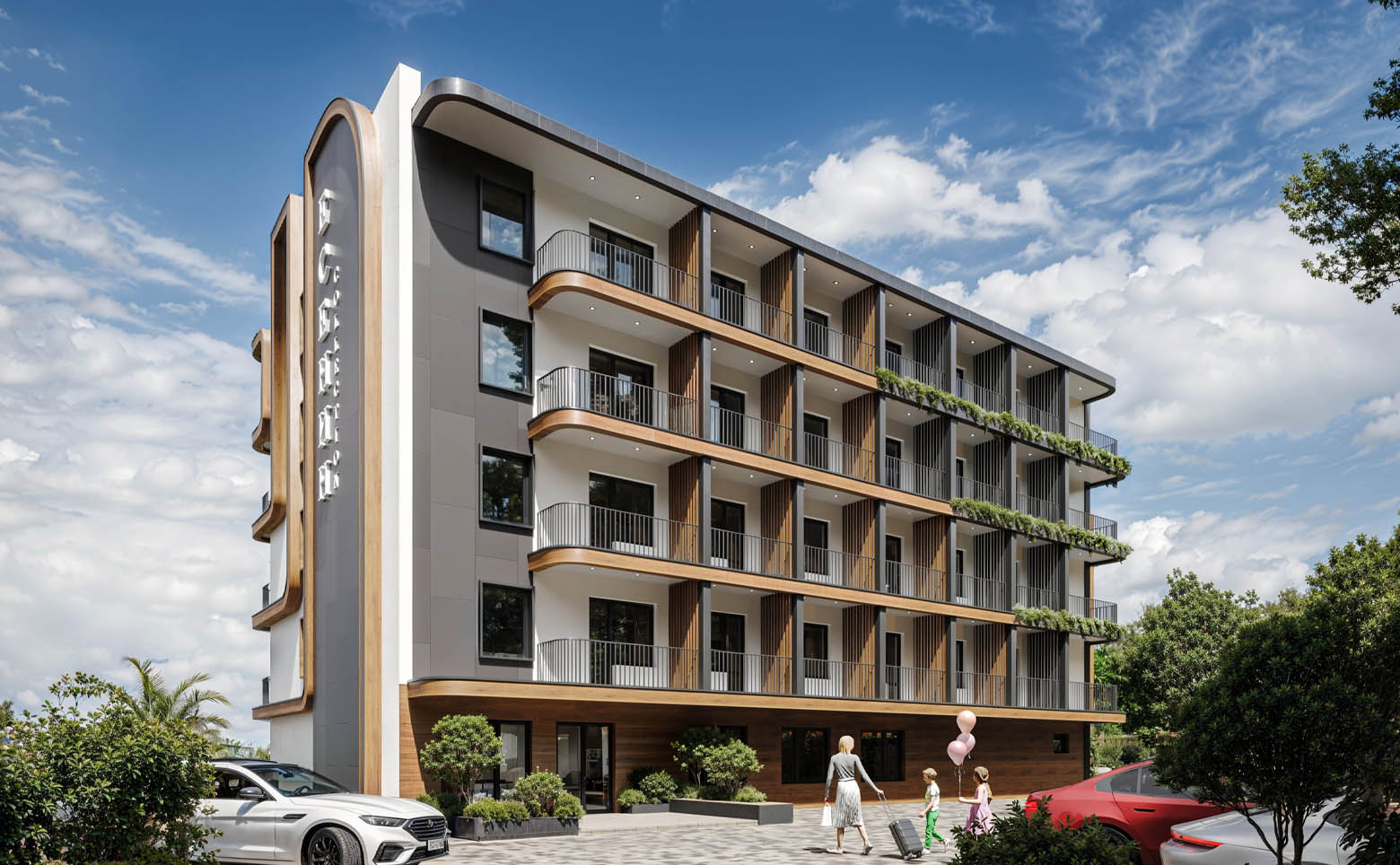Комплекс апартаментов комфорт-класса состоит из 2 корпусов высотой 6 этажей, возведенных по монолитной технологии с использованием комбинированных материалов в отделке фасадов.