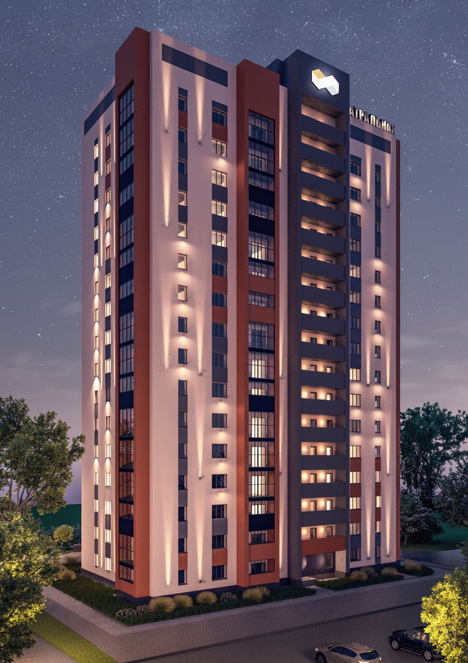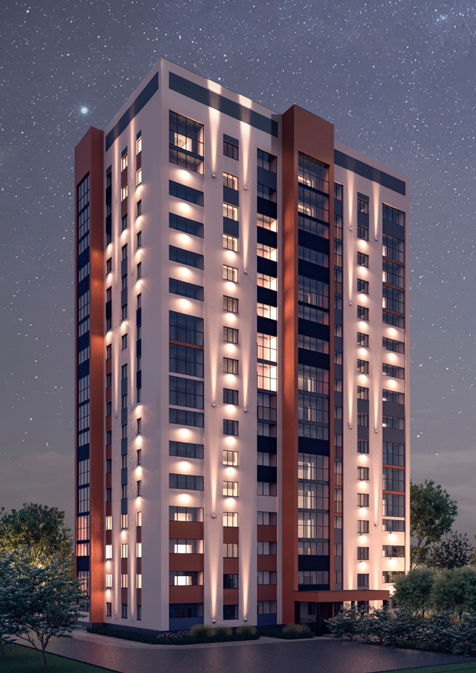 Современный семейный проект, возведенный по технологии кирпично-монолитного строительства с фасадами, облицованными штукатуркой и оснащенными подсветкой в ночное время. В здании имеется пассажирский и грузовой лифты.