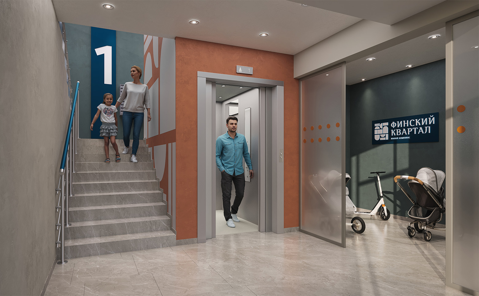 Жилой комплекс состоит из 6 корпусов переменной этажности от 6 до 9 этажей. Фасады выполнены из штукатурки светлых, темных и ярких оттенков. В домах выполнена дизайнерская отделка входных групп в скандинавском стиле, установлены современные скоростные лифты. Места для хранения колясок и велосипедов расположены на первых этажах каждого подъезда.