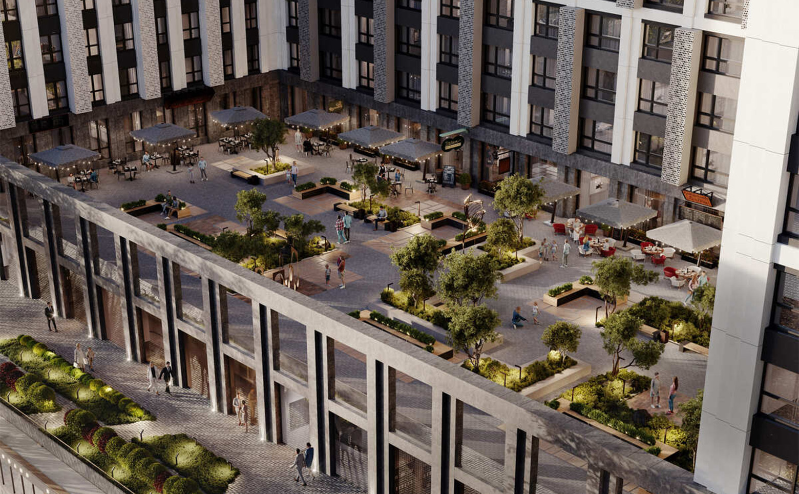 Жилой комплекс является комьюнити молл формата все включено. На подземных этажах предусмотрены паркинг с почасовой арендой, самая большая улица ресторанов в городе, и торговый центр. С 1 по 6 этаж спроектированы: стрит-ритейл, коммерческие площади с террасами, бьюти-комьюнити и офисы свободного назначения. На 7-9 этаже расположены апартаменты с чистовой отделкой и мебелью для сдачи. На 10-18 этажах находятся юниты для жизни. На 25 этаже, в одной из башен второй очереди, реализован ресторан с выходом на крышу и панорамным видом на Обь. В проекте реализован самый большой в Новосибирске гастрокорт. В проекте предусмотрен свой многофункциональный многоэтажный фитнес-центр с различными направлениями: тренажерный зал, кардио зона, групповые занятия, детский фитнес, а также термальный комплекс с видом на Обь, бассейнами и спа зоной. На территории современного комплекса выполнено ландшафтное благоустройство и озеленение кровли, которые гармонично вписываются в благоустроенную парковую зону.