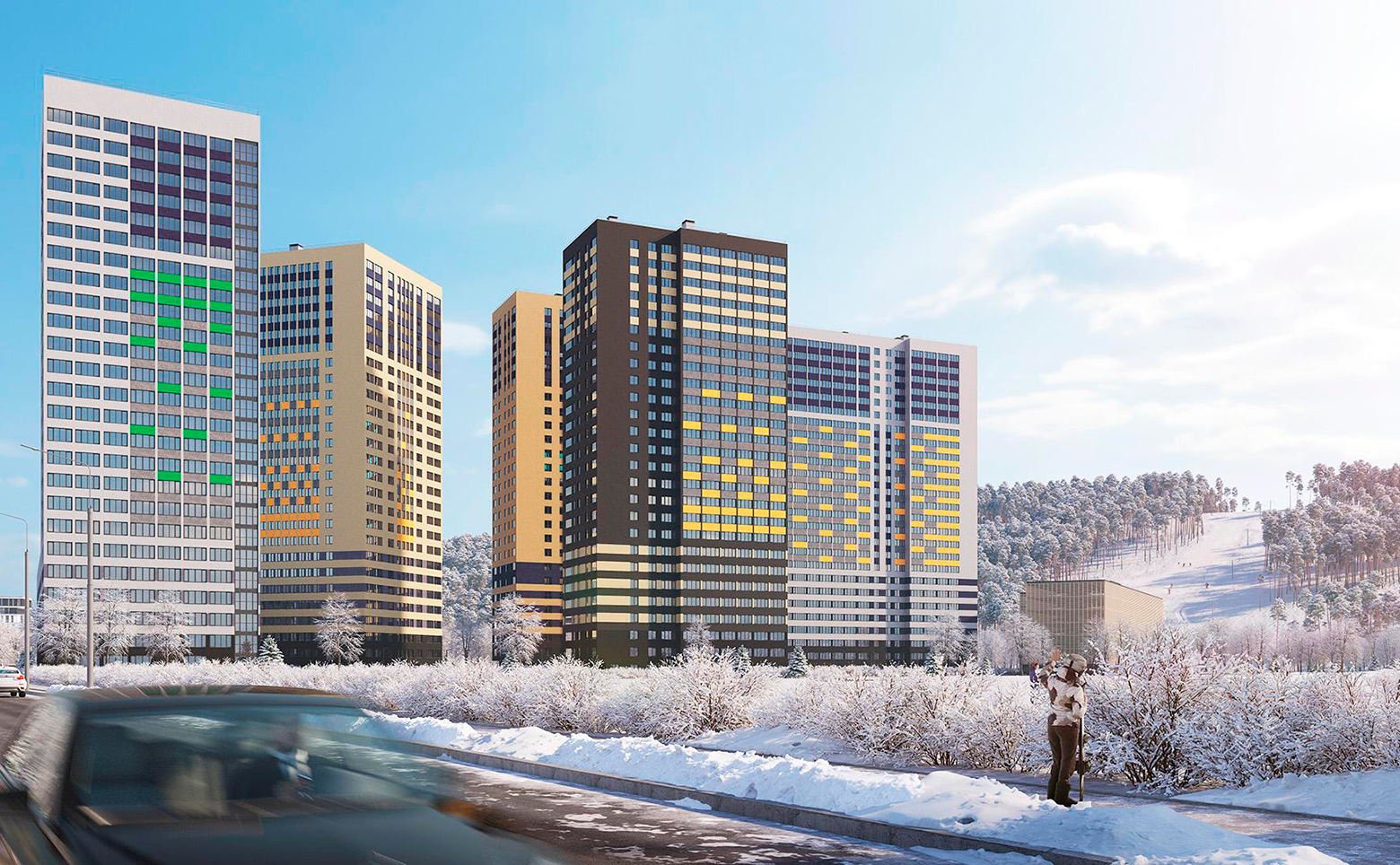 Жилой комплекс состоит из 5 корпусов переменной этажности высотой до 26 этажей. Дома возведены по долговечной кирпично-монолитной технологии. Фасады, выполненные в пастельных оттенках с яркими цветовыми акцентами, облицованы штукатуркой. Входные группы с дизайнерской отделкой оборудованы колясочными и местами для хранения велосипедов, установлены современные лифты.