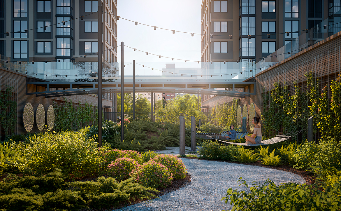 Дом «Гений» от RBI строится на просп. Большевиков в 10 минутах пешком от метро «Улица Дыбенко». В 1 очереди 611 квартир — от студий до трёхкомнатных с кухней-гостиной и мастер-спальней. Есть эксклюзивные квартиры с террасами. На 22-м этаже — high flats с потолками 3 м. Приватный brainstorm-двор с детскими площадками Richter RUS. Зелёный променад под пешеходным мостом. Два лобби и клуб-гостиная с Wi-Fi. Новый детский сад на 120 мест на территории.