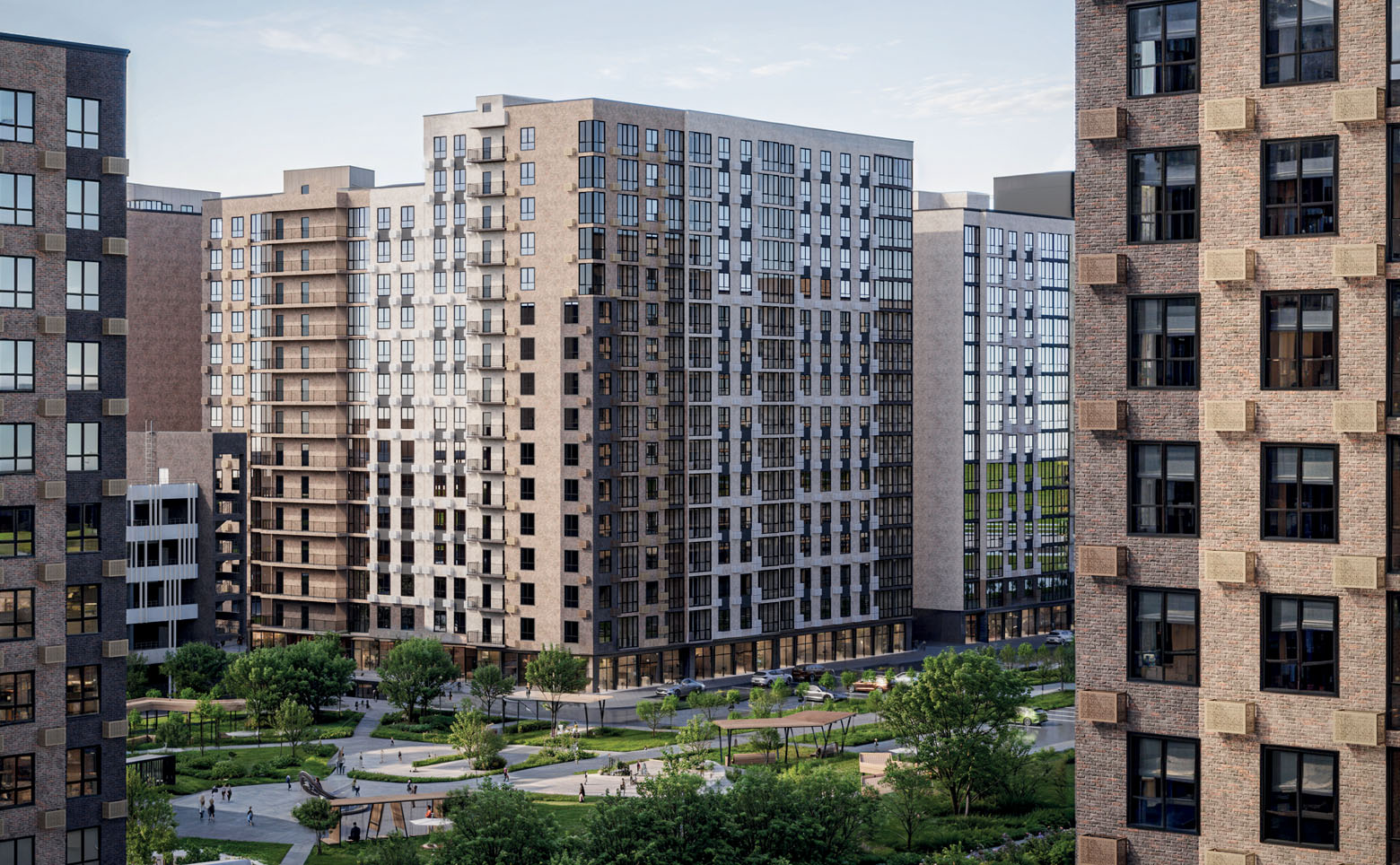 На территории микрорайона запроектированы детский сад, медицинский центр и физкультурно-оздоровительный комплекс. Для отдыха и прогулок оборудованы собственный бульвар, сквер, зеленые аллеи и зоны с навесами. Для детей и взрослых предусмотрены игровые и спортивные площадки, а также беговые дорожки и площадки для йоги. Территория безопасна и благоустроена: действует система видеонаблюдения, установлены умные шлагбаумы, реализован формат двора без машин. Для автомобилей предусмотрены стоянка, подземный и многоуровневый паркинги.
