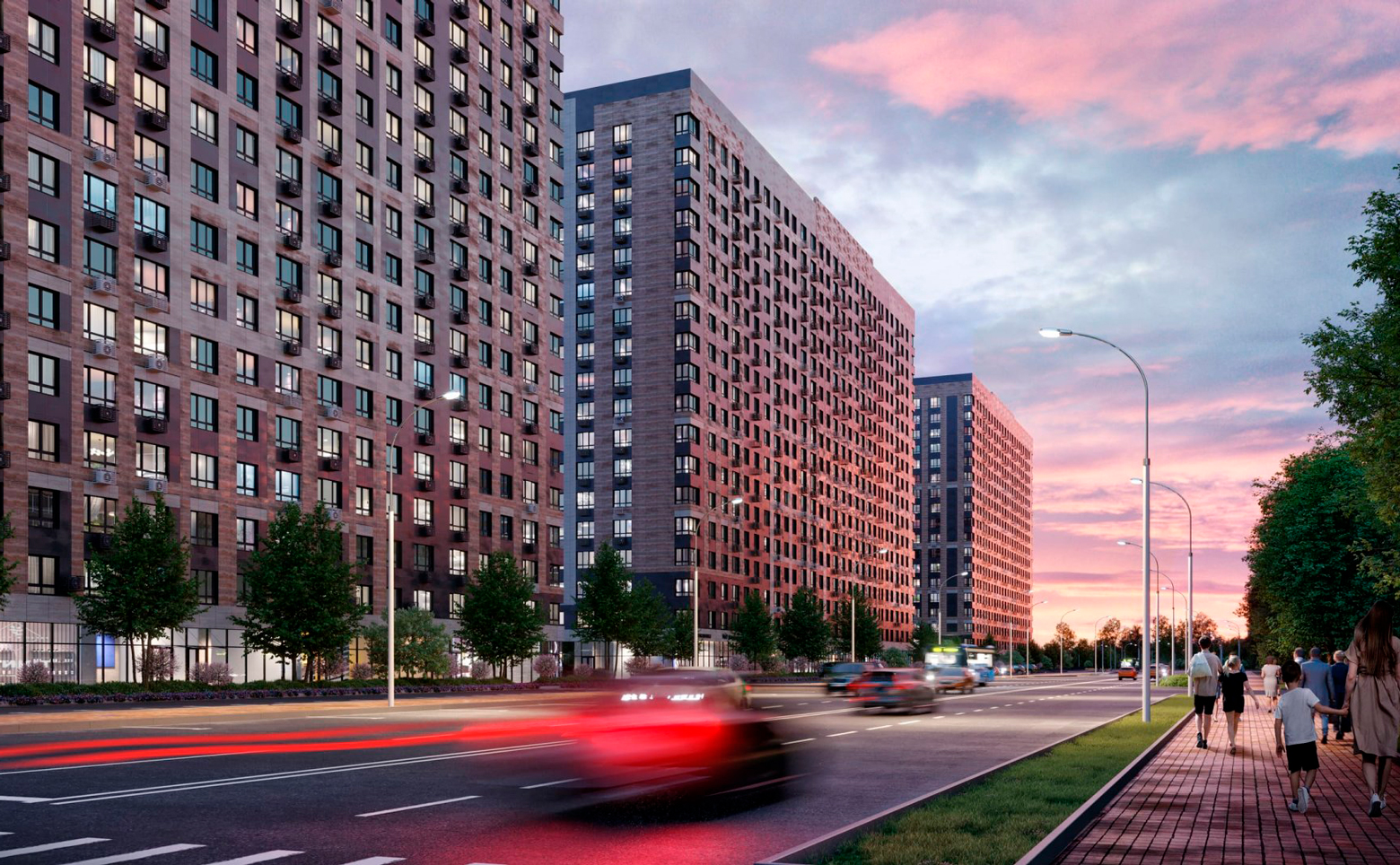 Дворовая территория комплекса организована по концепции без машин. На 2 подземных уровнях расположен вместительный паркинг. Во дворе размещены детский сад, игровые и спортивные площадки, футбольное и баскетбольное поля, а также воркаут-зона с тренажерами. Пешеходные дорожки и скамейки оснащены системой подогрева, что делает общественные зоны удобными даже в мороз. Безопасность обеспечивается интеллектуальной системой видеонаблюдения и контролем доступа.