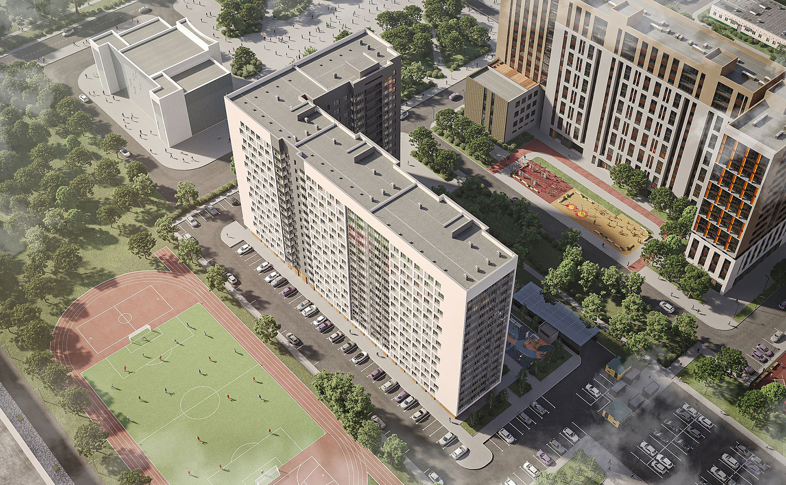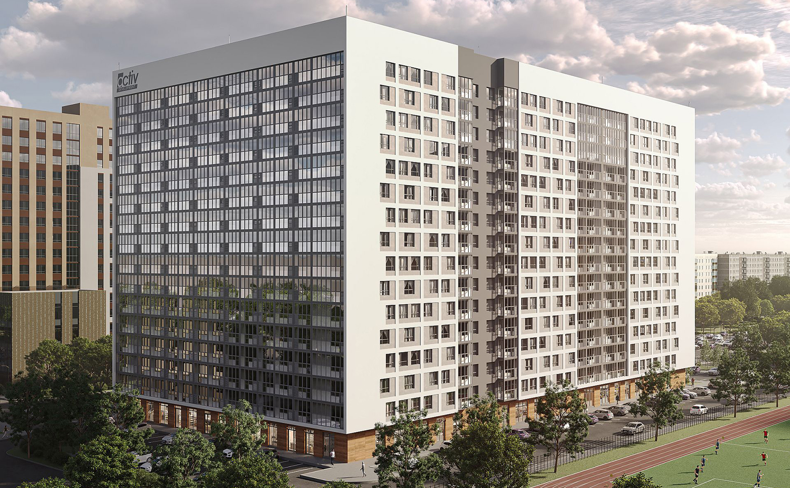 Придомовая территория благоустроена с применением современных ландшафтных решений. Оборудованы детская площадка с игровым оборудованием и зоны отдыха. Безопасность обеспечивает видеонаблюдение и умная система доступа на территорию с Face ID. Для автомобилей предусмотрен подземный паркинг с возможностью спуска на лифте, также доступны места для электромобилей, лодок и катеров, оборудованы кладовые помещения.