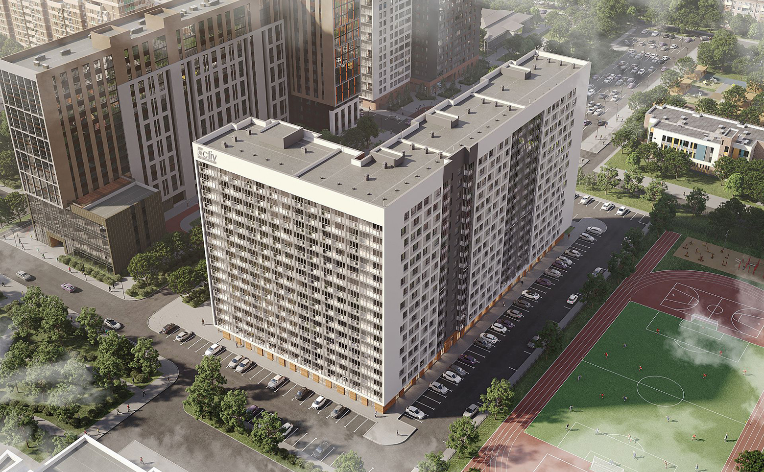 В проекте представлены студии и квартиры с 1–3 комнатами. Высота потолков составляет 2,7 м, установлены стандартные окна с двухкамерными стеклопакетами. Квартиры передаются в подчистовой отделке. Предусмотрена стальная входная дверь с внутренней ламинированной отделкой, оштукатуренные стены, цементно-песчаная стяжка пола со звукоизоляцией, гидроизоляция в санузлах, разводка инженерных коммуникаций, установлены розетки и выключатели, стальные радиаторы отопления. В одном из санузлов предусмотрены унитаз, раковина и смеситель. Смонтированы индивидуальные приборы учета потребления ресурсов. Индивидуальная крышная котельная позволяет оптимизировать коммунальные расходы.