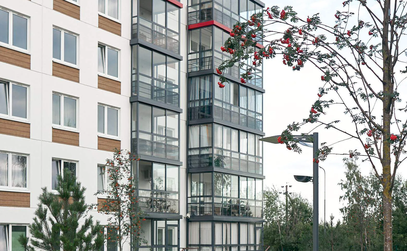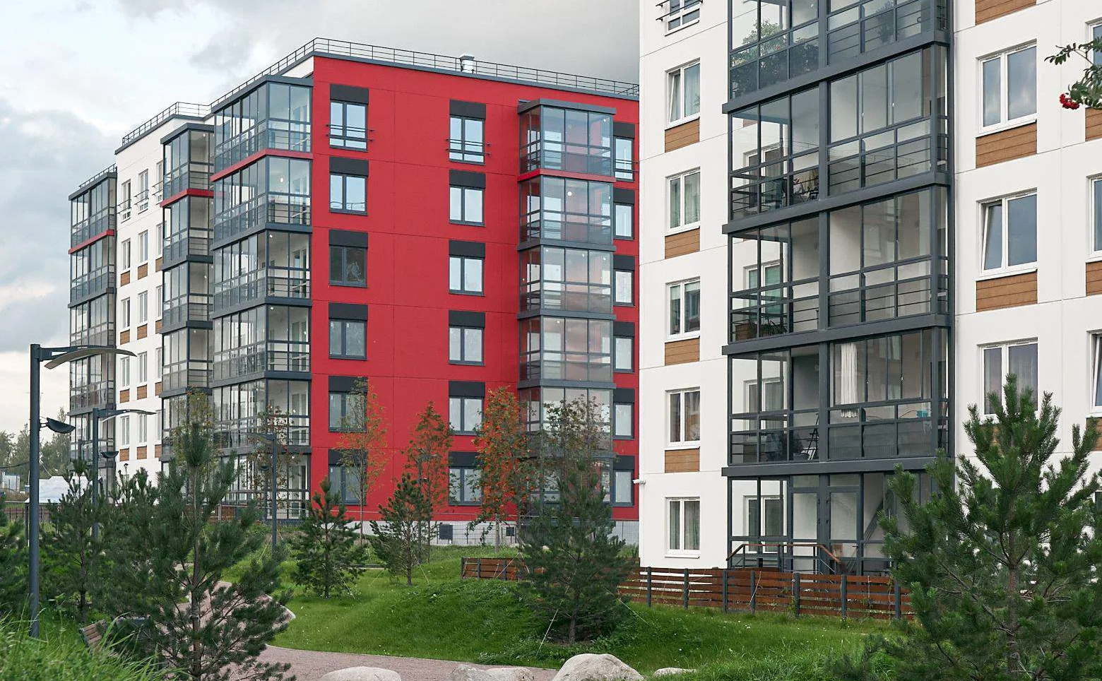 Малоэтажный жилой комплекс комфорт-класса выполнен в скандинавском стиле. В проекте представлены корпуса высотой до 6 этажей, возведенные по панельной технологии с применением железобетонных панелей в отделке фасадов. Отделка холлов и мест общего пользования выполнена в скандинавском стиле.