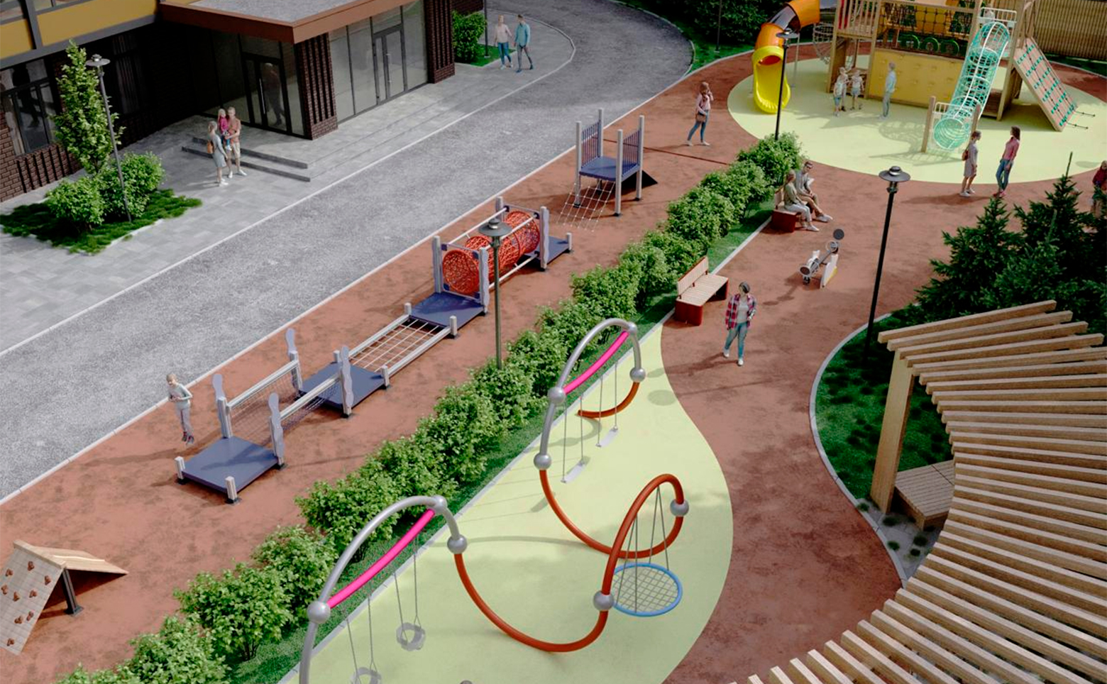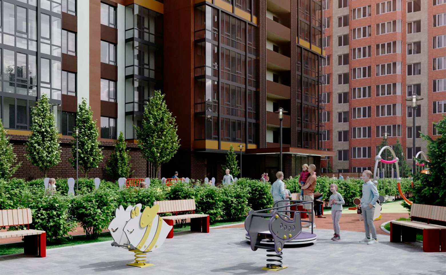 Внутренняя инфраструктура проекта предлагает жителям удобства для комфортной жизни. Во дворе имеется огороженная детская площадка. Для коммерческих помещений выделен 1 этаж дома. Для автомобилей предусмотрены стоянка и подземный паркинг.