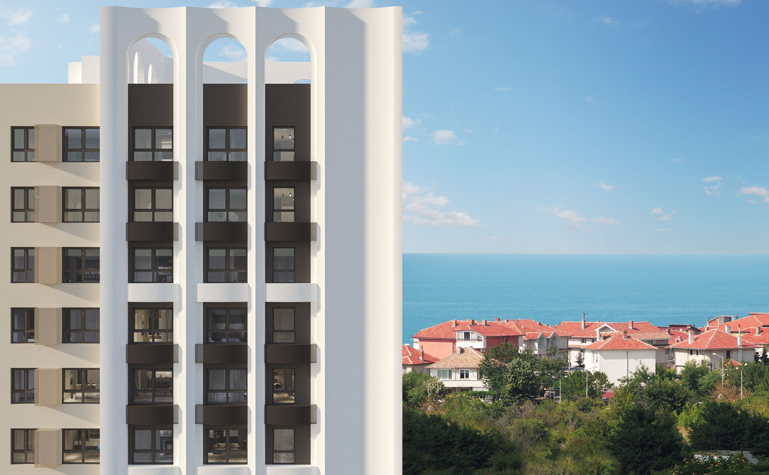 В проекте предложено множество планировочных решений классического типа: от уютных студий до просторных 3-ех комнатных квартир. Сдаются они с подчистовой отделкой, панорамными окнами и высотой потолков 2,7 метра.