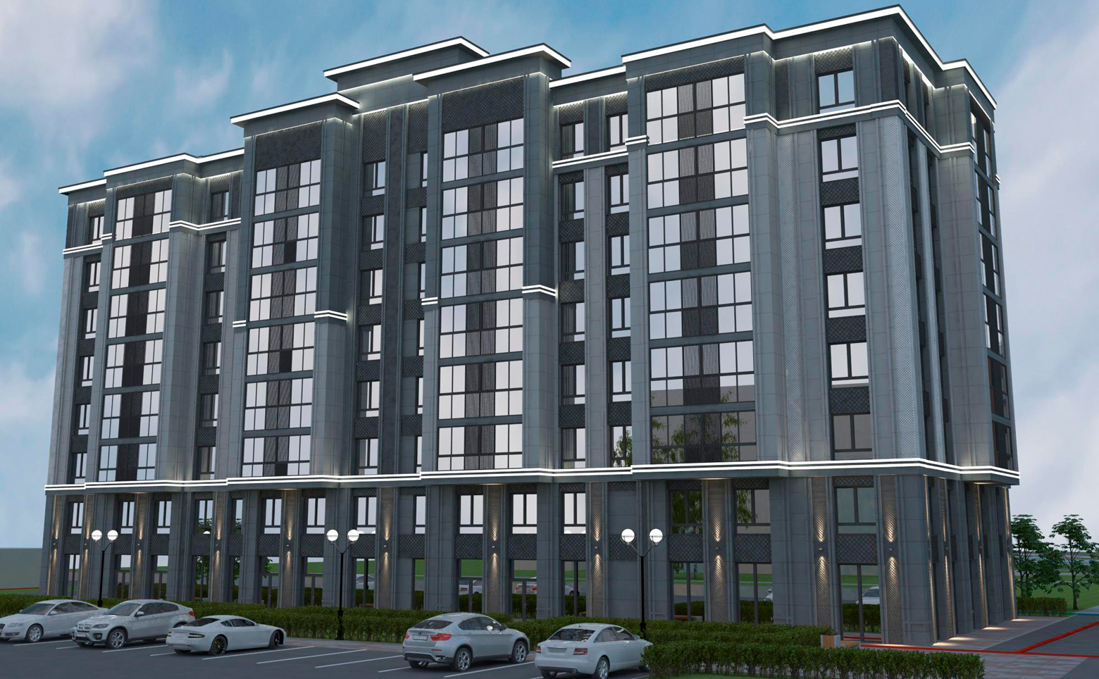 Клубный дом комфорт класса представлен 9-этажным зданием, возведенным по кирпичной технологии. Объект выполнен с вентилируемыми фасадами из панелей, предусмотрены дизайнерское оформление и архитектурная подсветка. Для удобства жителей установлены пассажирский и грузовой лифты, обеспечен безбарьерный доступ.