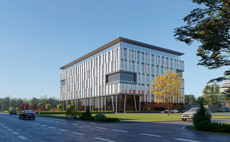 ИнфраструктураДля размещения автомобилей в комплексе спроектирован подземный паркинг вместимостью 269 машино-мест. Территория комплекса будет обустроена просторным прогулочным променадом с тематическими зонами отдыха и велосипедными парковками. На первом и втором этажах здания разместятся разнообразные коммерческие объекты: фудкорт площадью более 600 кв. м с магазином готовой пищевой продукции, супермаркет, фитнес-центр (200 кв. м), панорамная торговая галерея и бизнес-центр с конференц-залами и офисными помещениями.
