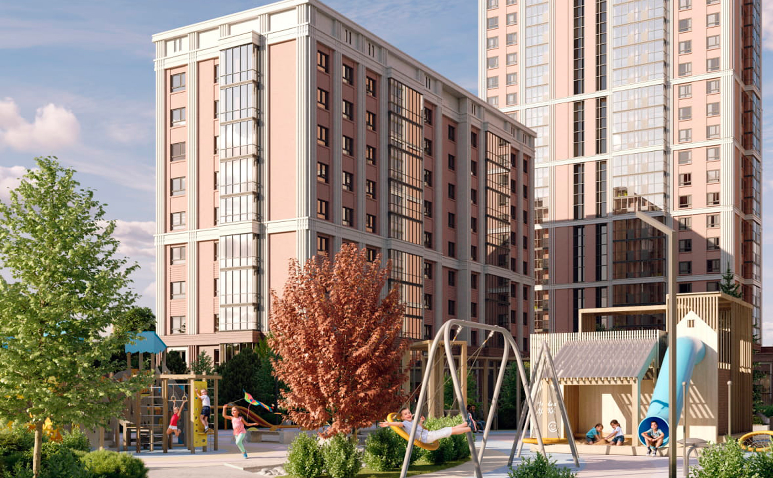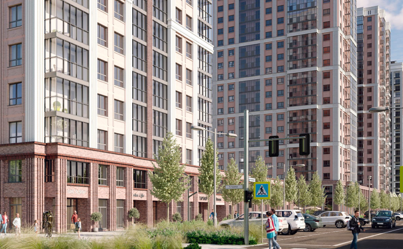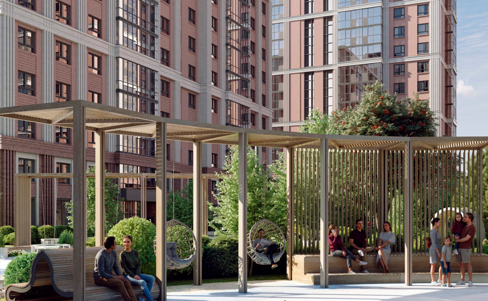 На территории предусмотрены современные детские площадки, спортивные зоны, беговые и велосипедные дорожки, зоны отдыха, а также крытый бассейн для детей. Внутренний двор благоустроен, на первых этажах зданий находятся магазины и кафе. Для владельцев автомобилей запроектирован подземный паркинг.