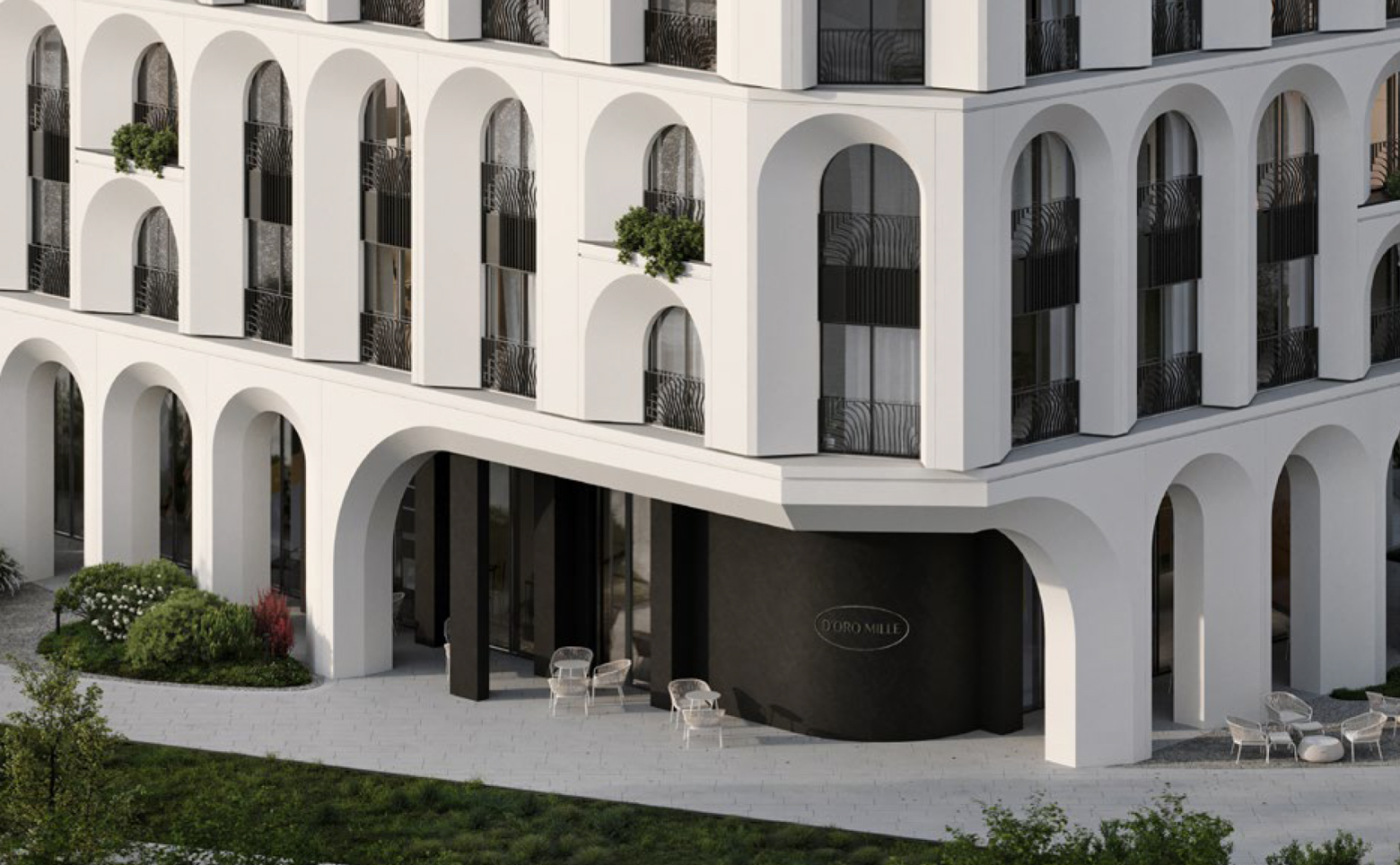 Клубный дом D'ORO MILLE — проект, расположенный в 2 км от Садового кольца в престижном районе Дорогомилово, а также соседствует с Кутузовским пр., Арбатом, Хамовниками, Пресненским р-ом. Клубный дом отличается фасадом из 343 белоснежных арок. Резидентам доступен сервис на уровне отеля 5*. В проекте представлено 156 лотов различных площадей, из которых 6 пентхаусов с авторским дизайном, оборудованных застекленными верандами и дровяными каминами.