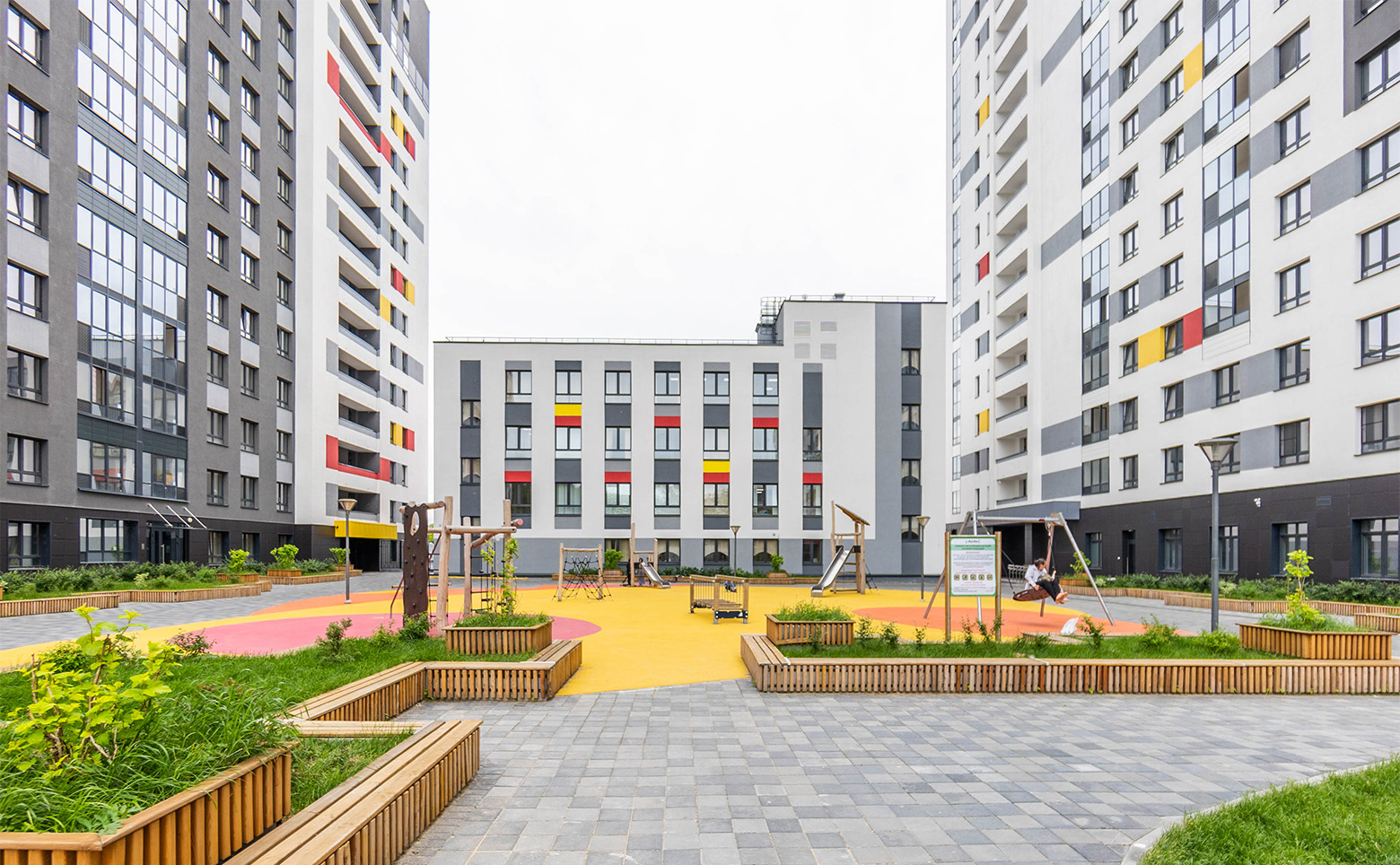 Территория внутреннего двора разделена на несколько функциональных зон для игр детей разных возрастов, занятий спортом и соседского досуга. На территории ведется круглосуточное видеонаблюдение, наружные камеры установлены по периметру комплекса, в паркинге, входных холлах и лифтах. На первых этажах располагаются коммерческие помещения. Для владельцев автомобилей предусмотрены подземный паркинг и стоянка.