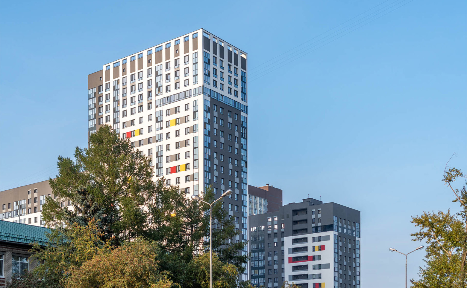 Жилой комплекс включает в себя 2 корпуса переменной этажности: от 15 до 25 этажей. Дома возводятся по долговечной кирпично-монолитной технологии с вентилируемыми фасадами из керамогранита. В проекте выполнена дизайнерская отделка входных групп, установлены современные скоростные пассажирский и грузовой лифты.