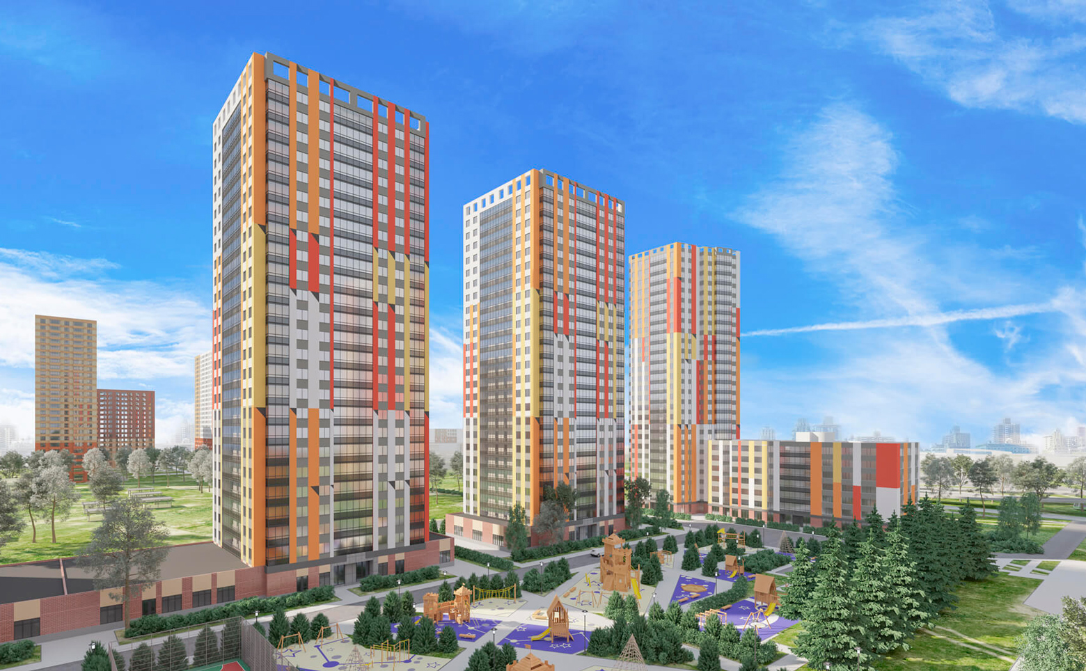 Жилой комплекс включает в себя 7 корпусов переменной этажности. Проект возведен по долговечной монолитной технологии, в отделке фасада используется штукатурка. В ЖК установлены современные скоростные лифты.