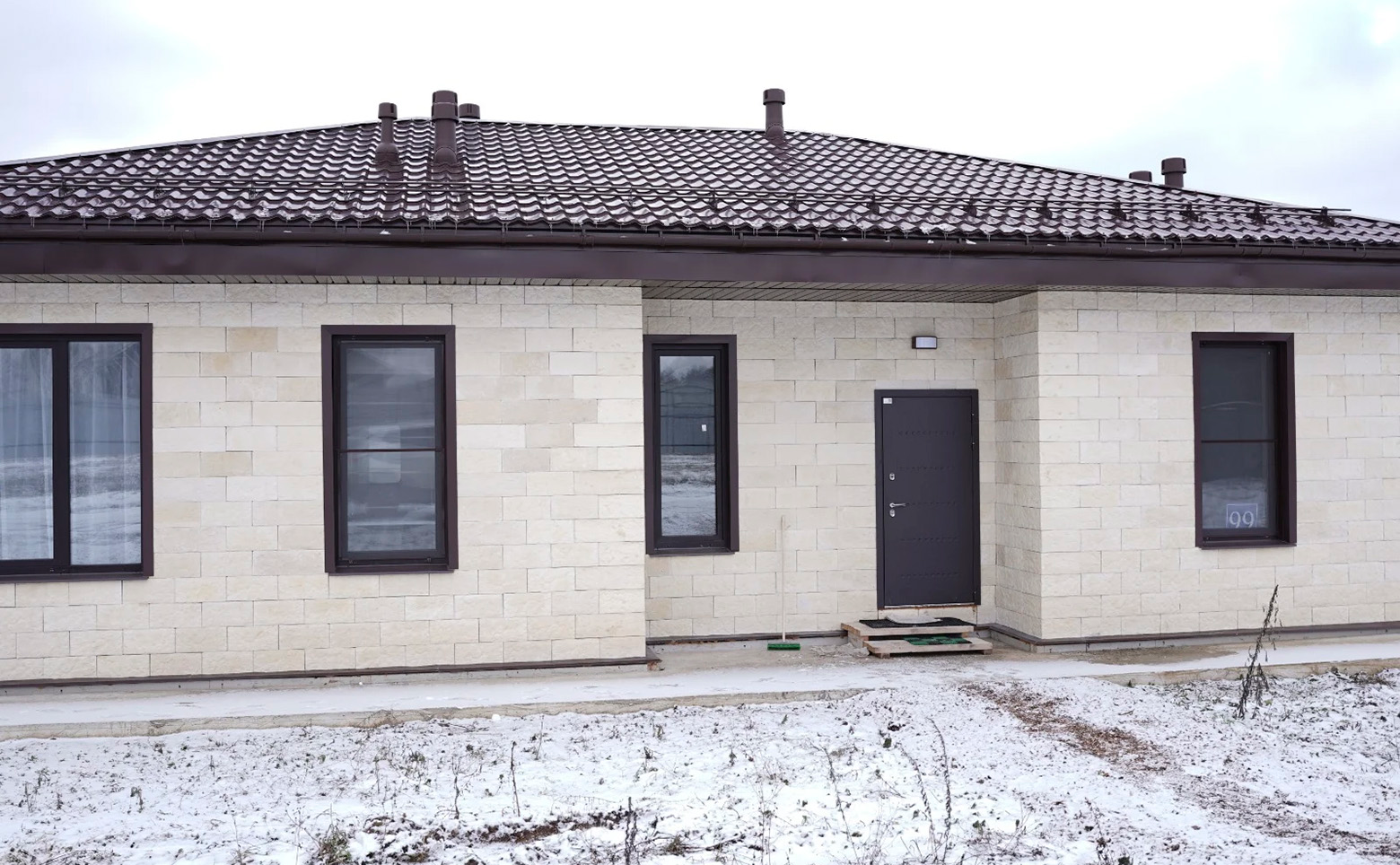 В коттеджном поселке представлены дома в кирпичном исполнении с фасадами из облицовочного кирпича или декоративной штукатурки. В составе коттеджного поселка предусмотрены 2 участка без обязательства строительства — их можно использовать для реализации индивидуальных архитектурных решений. В проекте сочетаются классические архитектурные решения и современные строительные технологии.