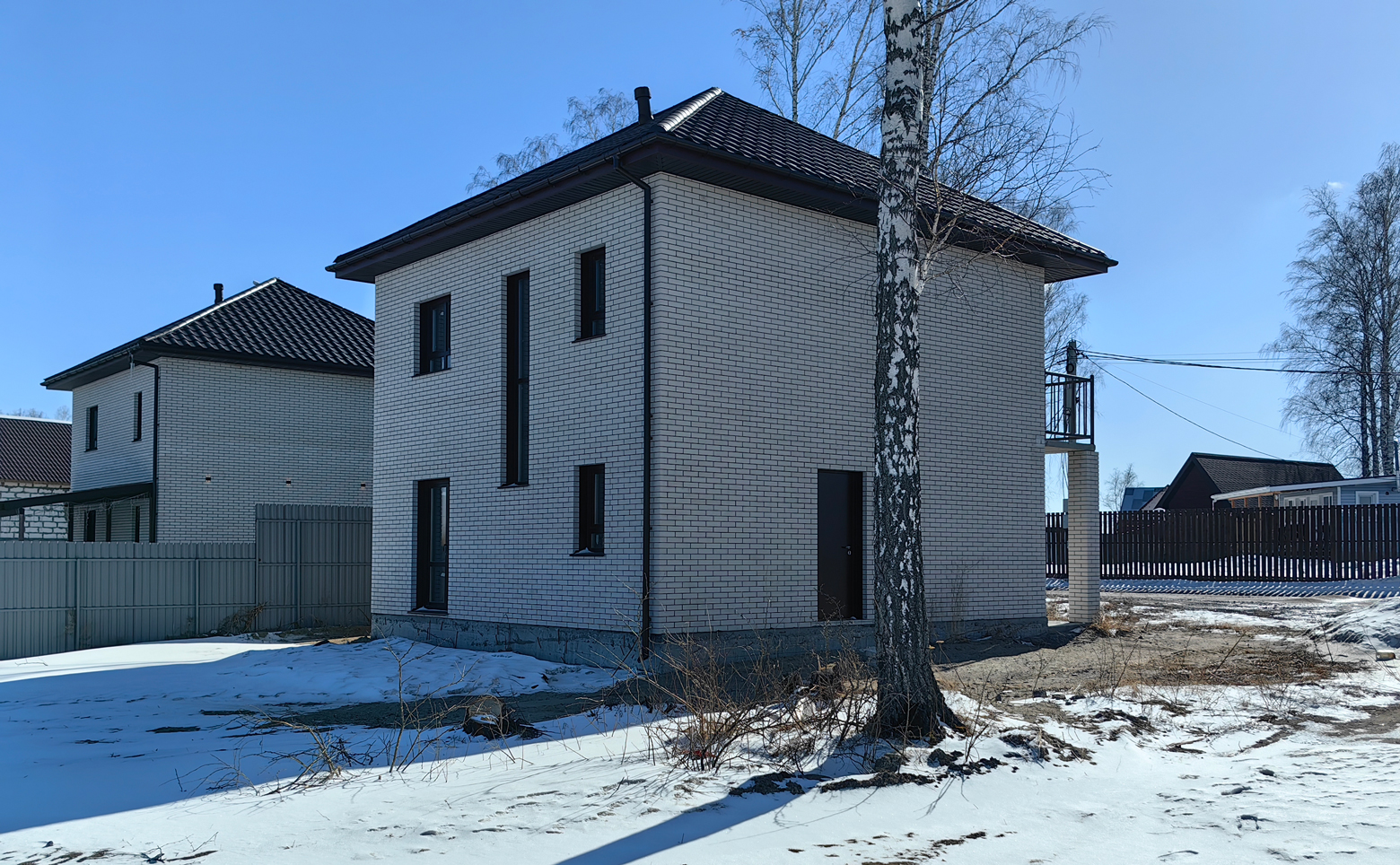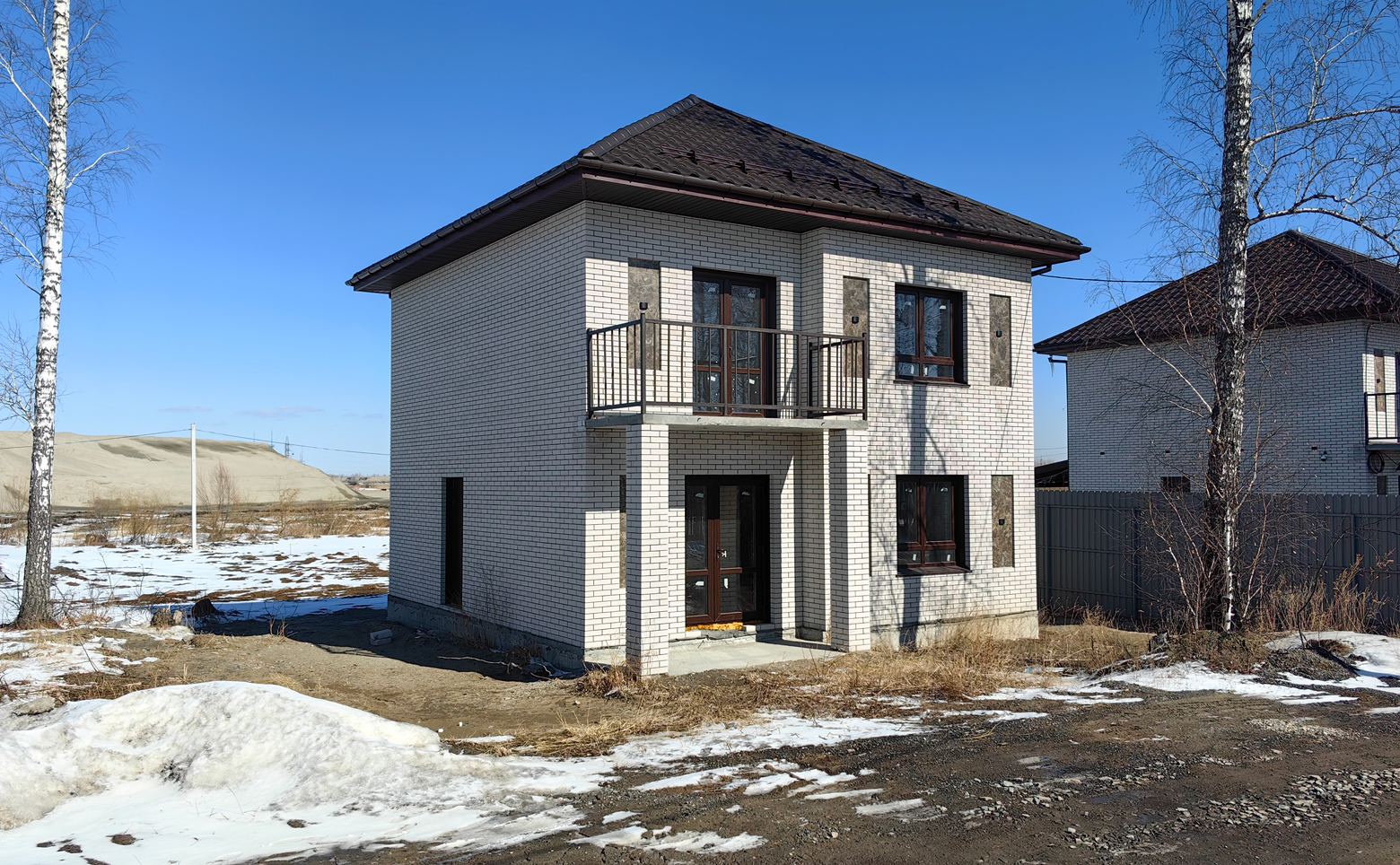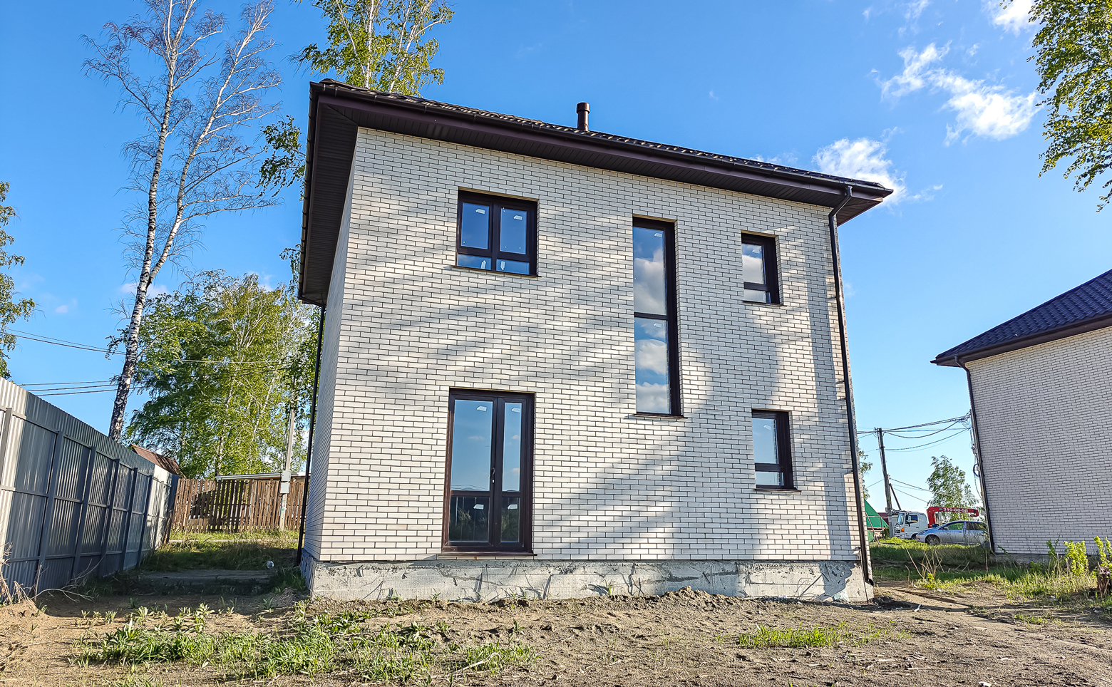 В коттеджном поселке предлагается участок площадью 6 соток с готовым домом от застройщика. Земля относится к категории ДНТ, с возможностью оформления постоянной регистрации. Строительство выполнено из газобетона, фасады облицованы кирпичом, что обеспечивает энергоэффективность и долговечность конструкции.