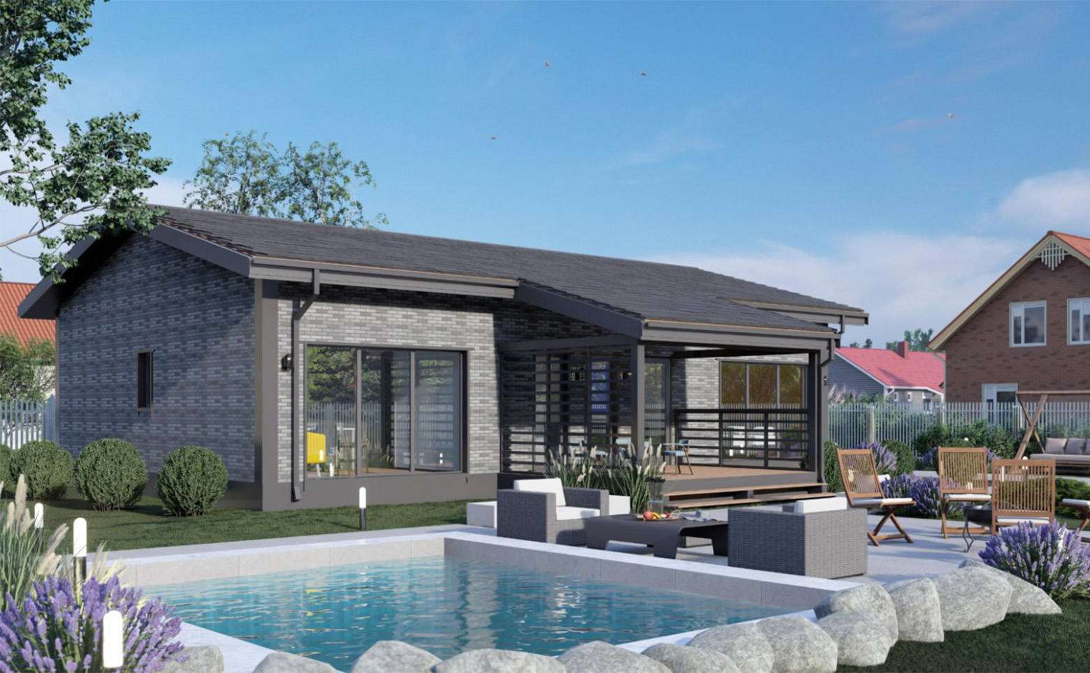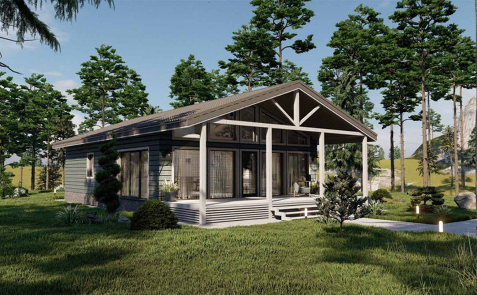 Проект включает в себя более 100 участков под застройку. Дома возводятся из бруса и каркаса, фасады выполнены из дерева или облицовочного кирпича.