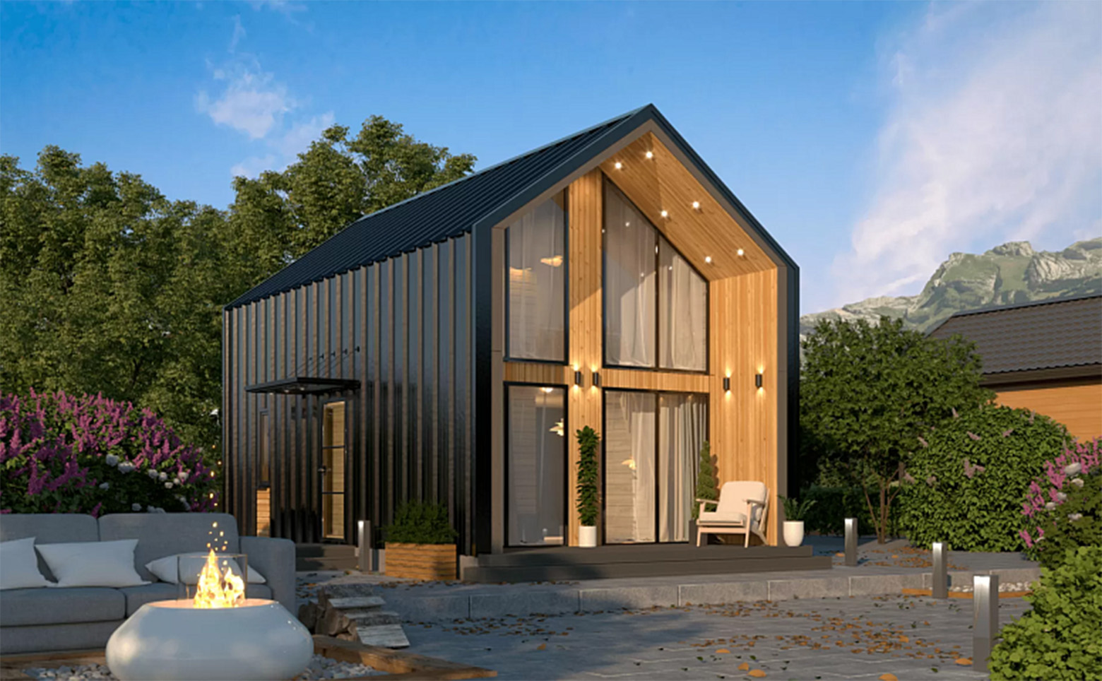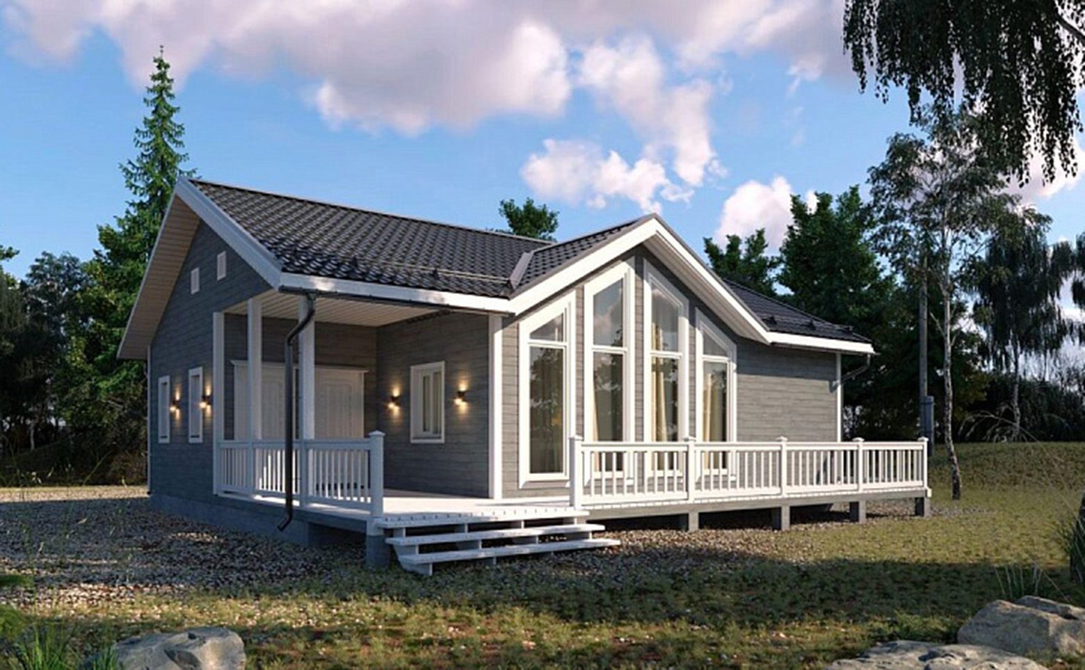 В проекте предложены различные варианты планировок домов под подряд от 33 до 182 квадратных метров. Высота потолков в домах от 2,7 до 5 метров. Есть возможность дозаказать дополнительные постройки — гараж и навес.