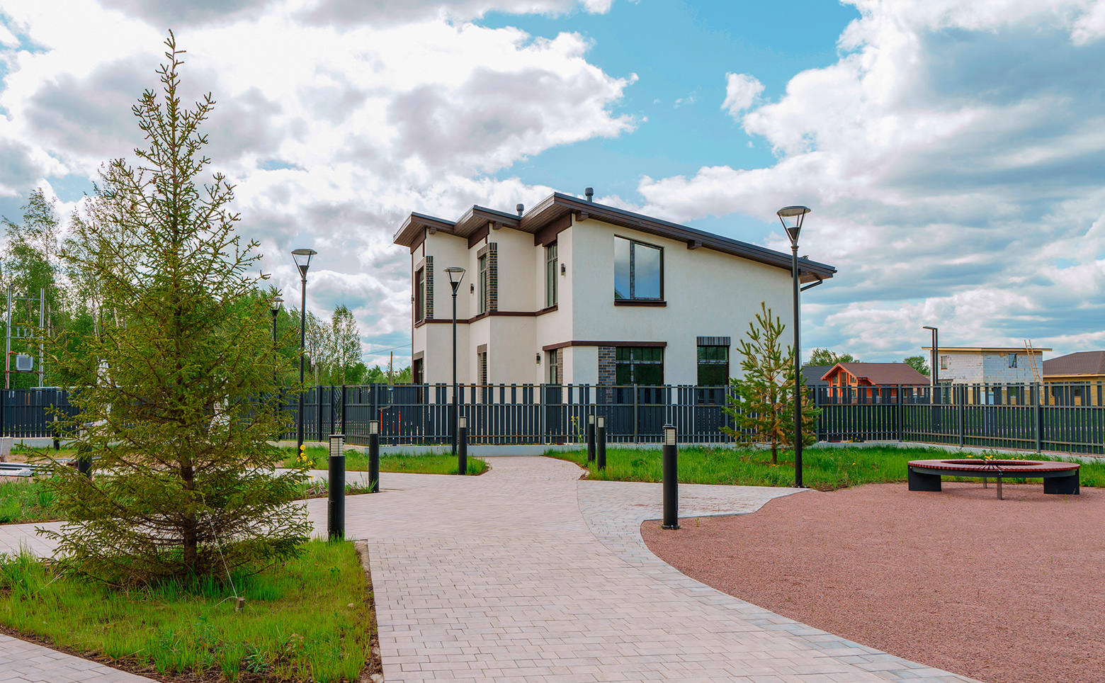 Коттеджный поселок представляет собой современный проект, возведенный по технологии железобетонного финского строительства с фасадами из штукатурки. Все застройки соответствуют единому дизайн-коду.