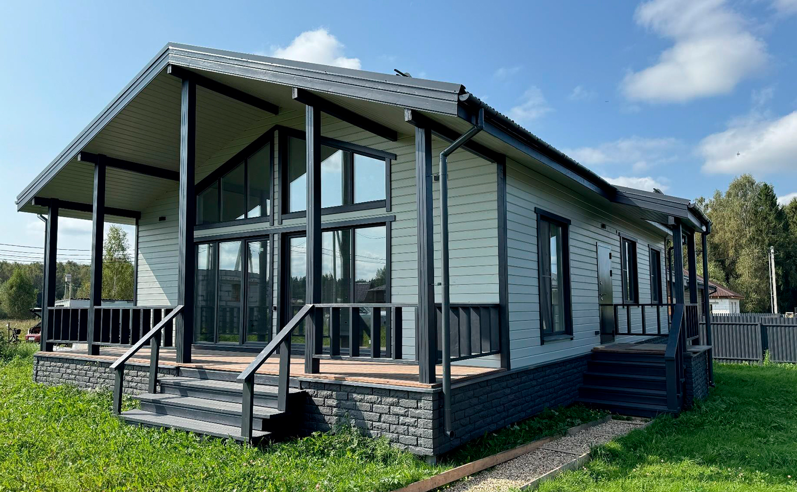 В проекте представлены коттеджи площадью 117,62 кв. м с функциональной планировкой: кухня-гостиная, 3 комнаты и терраса. В доме установлены стандартные, увеличенные и панорамные окна, а также окна в ванной. Высота потолков составляет 3 м. Жилье передается с чистовой отделкой: выполнен монтаж натяжных потолков, в комнатах уложен ламинат, в технических помещениях и санузлах — плитка. Стены отделаны карельским профилем, в санузлах предусмотрена плитка. Установлены розетки и выключатели, выполнено внутреннее и наружное освещение, смонтирован инфракрасный теплый пол и бойлер. Предусмотрены межкомнатные двери, плинтусы, входная дверь, остекление и забор по периметру участка.