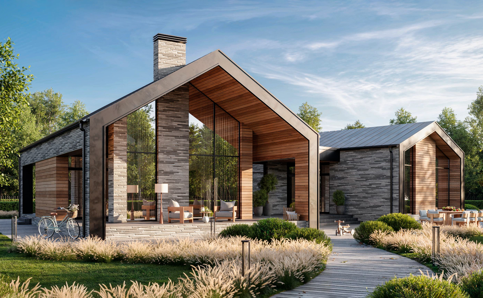 В коттеджном поселке на выбор предлагается 6 проектов домов площадью от 193 до 354 кв. м. В каждом доме предусмотрено место для расположения сауны, камина, просторные гостиные площадью от 30 кв. м, мастер-спальни, гардеробные, кладовые, а также террасы. Дома оформлены в лаконичном современном стиле. Фасады украшены ригельной плиткой и планкеном из лиственницы. Панорамное остекление открывает живописные виды на Волгу и благоустроенную территорию курорта. Дома сдаются без отделки. Каждый участок оборудован скрытыми центральными коммуникациями.