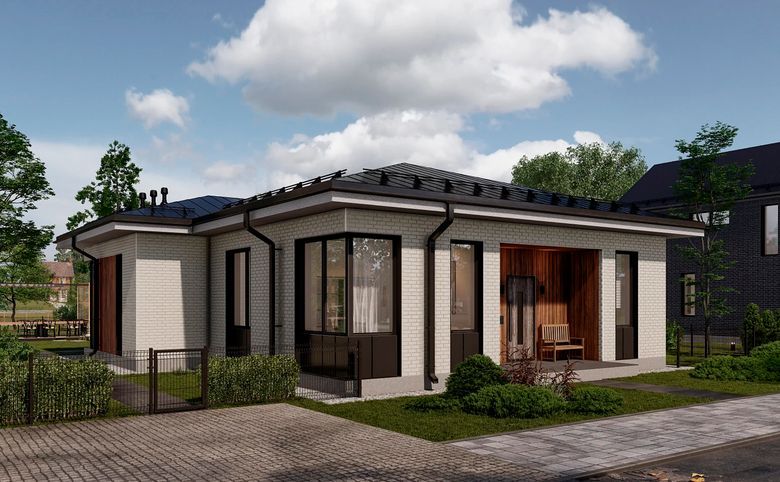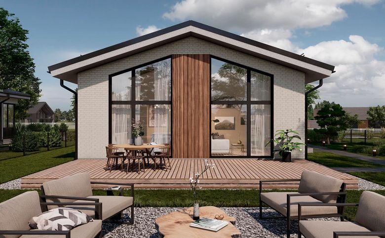 В проекте представлены дома с окнами различных типов — стандартные, увеличенные, панорамные и окна в ванных комнатах. Высота потолков варьируется от 3 до 4,8 метров. Владельцы участков по периметру поселка получают живописный вид на лес. Помещения идут без стен, базовая комплектация включает в себя остекление, входную дверь, межкомнатные перегородки, выравнивание участка, установку ограждения и снегозадержателей, а также озеленение перед домом. Дополнительно можно заказать подчистовую и чистовую отделку в форматах Вайт Бокс или Под ключ.