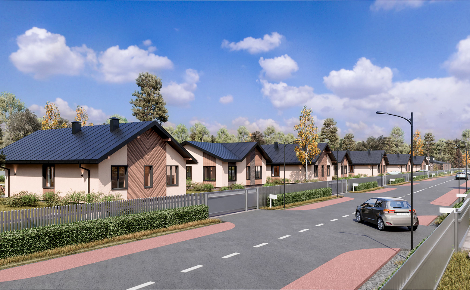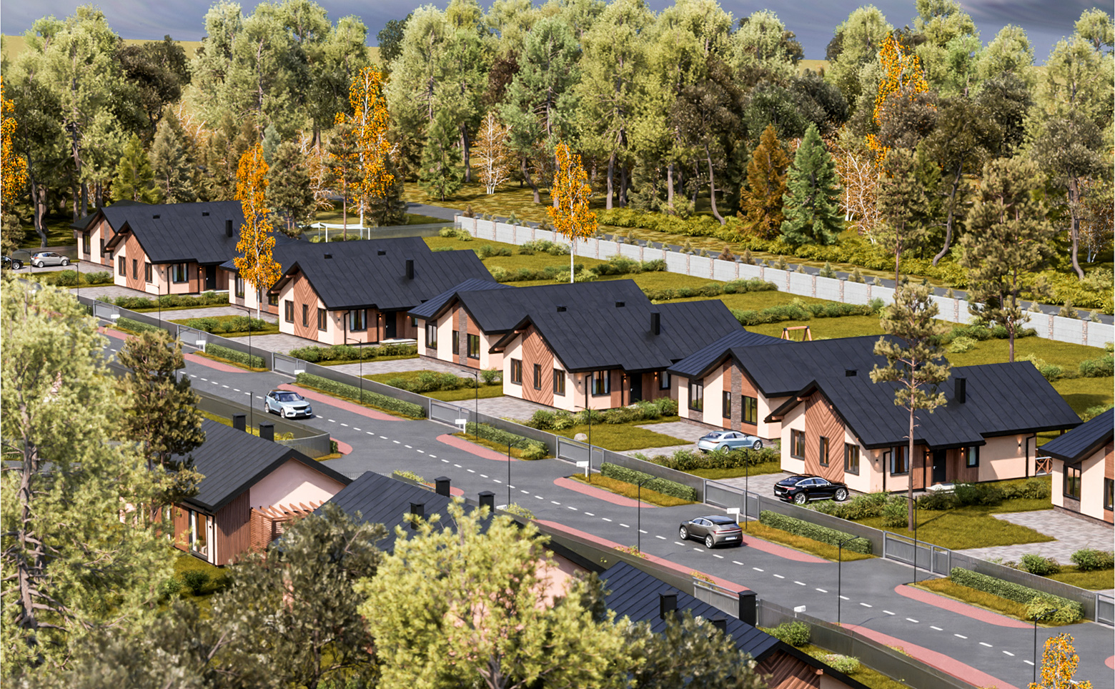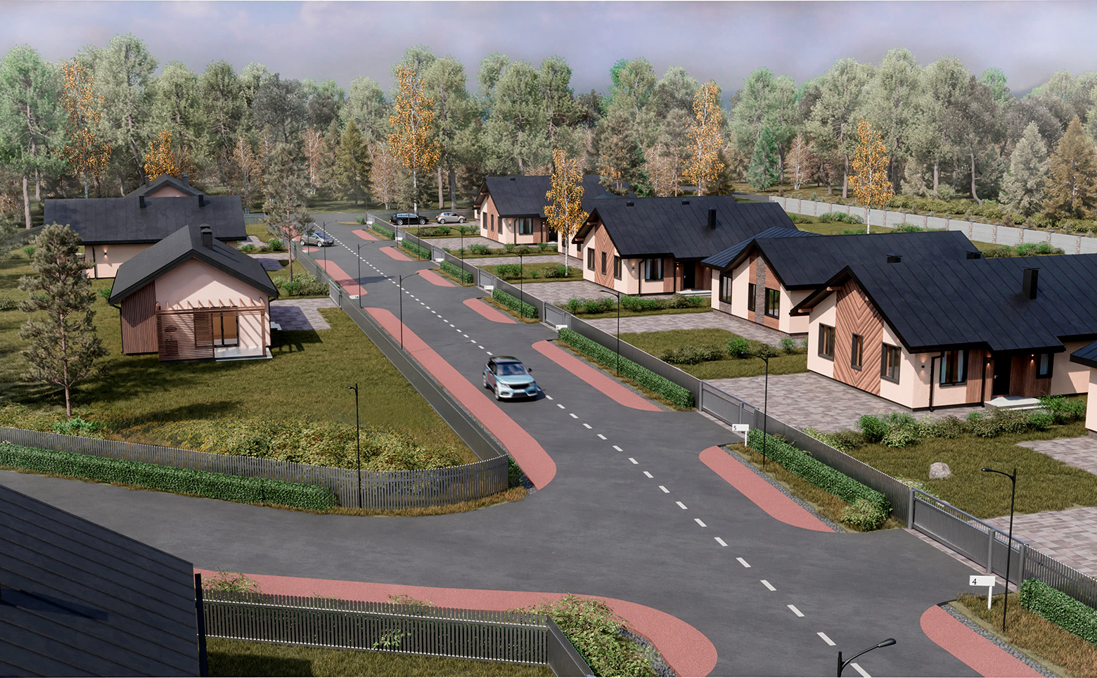 Современный проект, включающий в себя коттеджи и участки под застройку. Каждый дом имеет свой уникальный дизайн и стиль. Площадь участков варьируется от 8 до 18 соток.