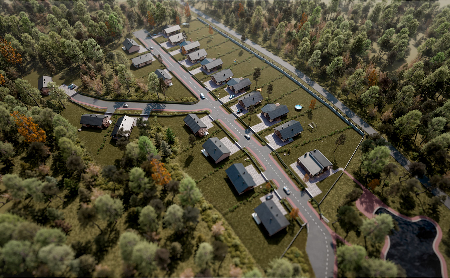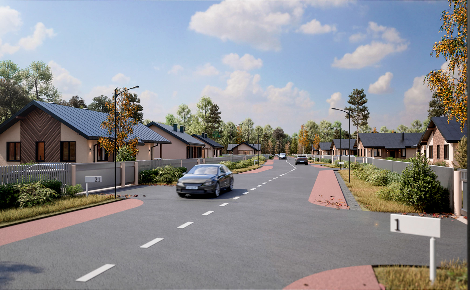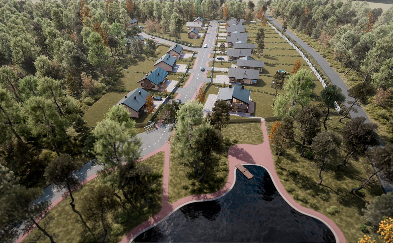 Современный проект, включающий в себя коттеджи и участки под застройку. Каждый дом имеет свой уникальный дизайн и стиль. Площадь участков варьируется от 8 до 18 соток.