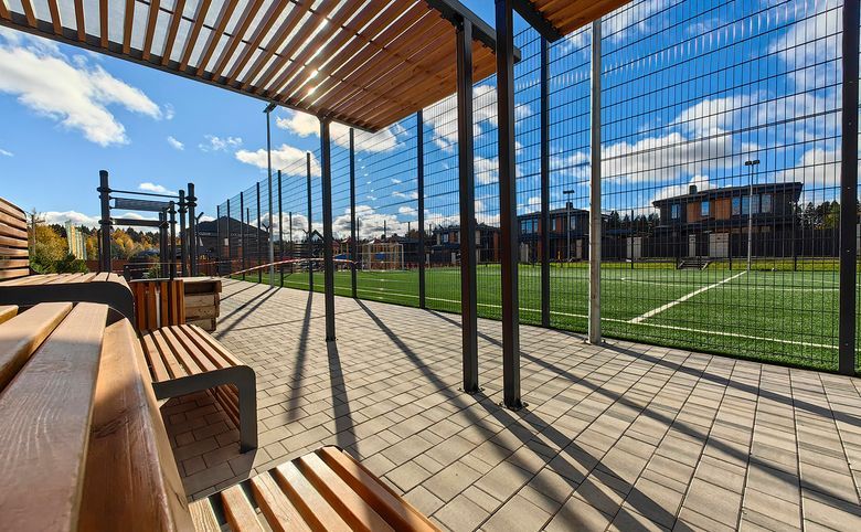 В поселке создана вся необходимая инфраструктура для комфортного проживания. Обустроены детские и спортивные площадки, футбольное поле и теннисный корт. Центральная улица озеленена и оборудована прогулочной зоной. Предусмотрен гостевой паркинг на 40 мест. Имеются все коммуникации: водоснабжение, электроснабжение и канализацию заведены в дома, газ подведен к границам участка.