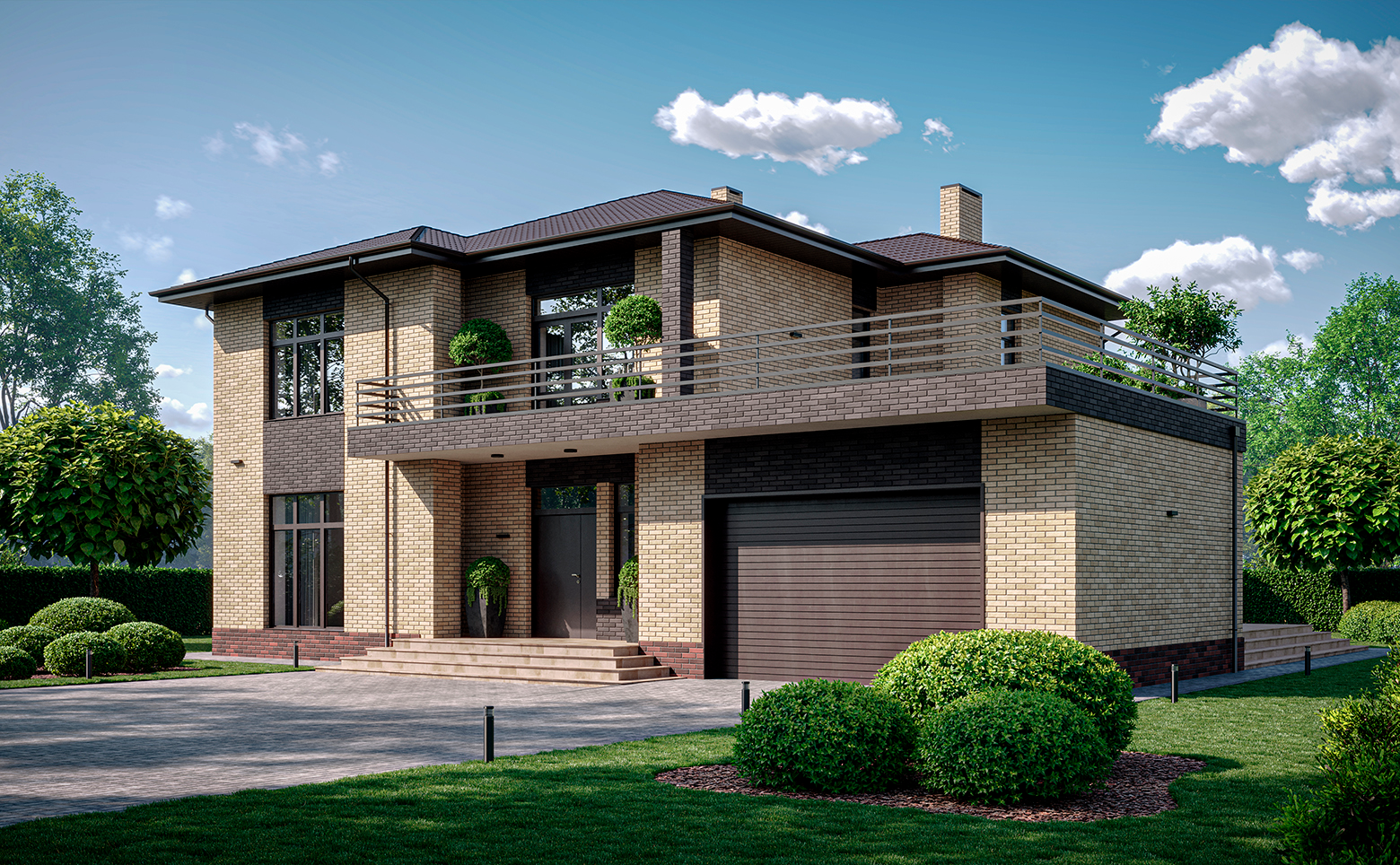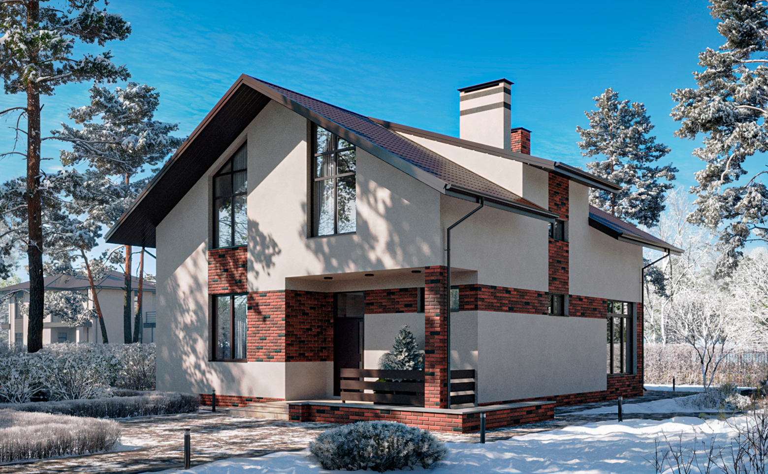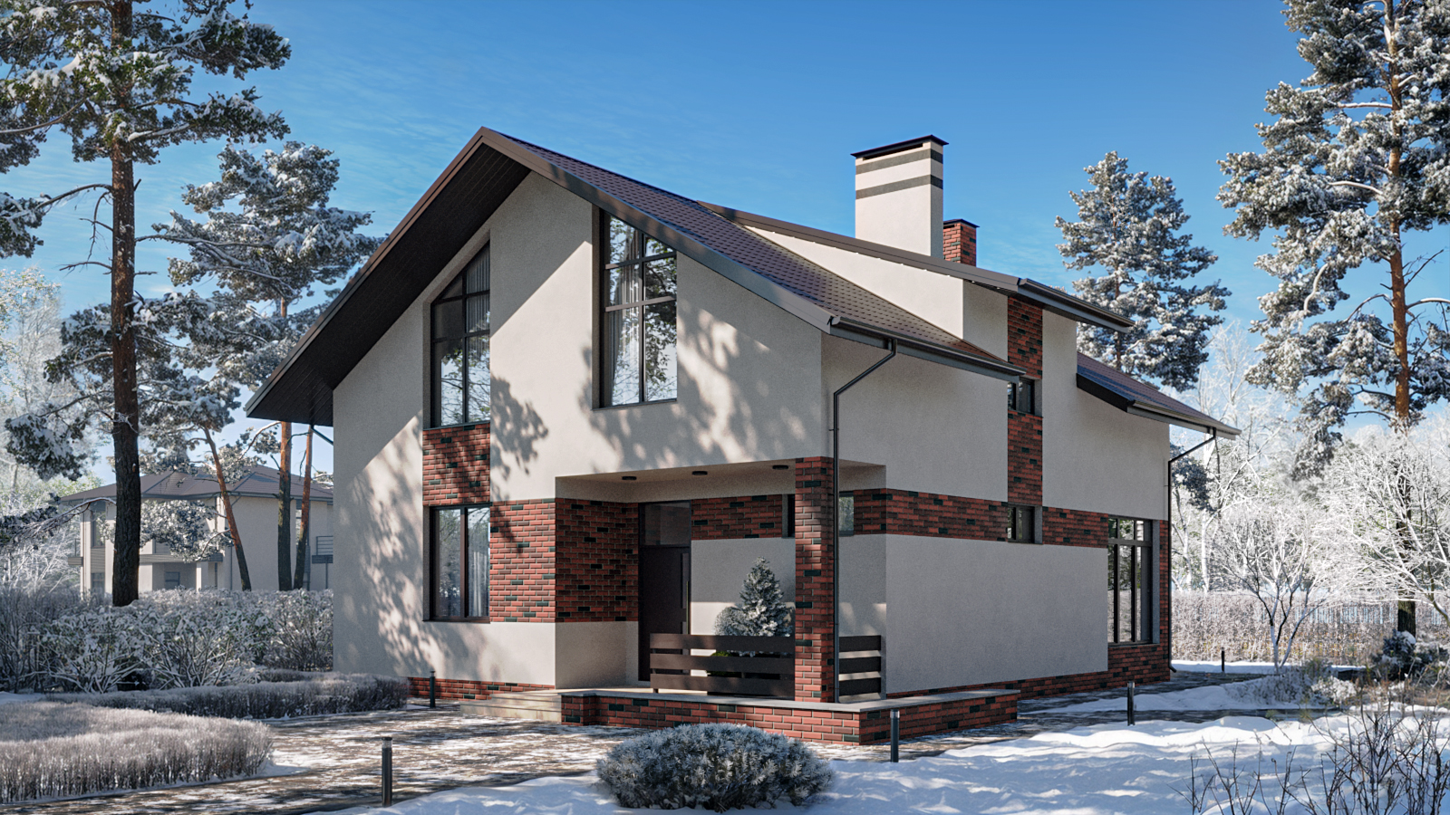 Коттеджный поселок представляет собой малоэтажную застройку с домами в 1 и 2 этажа. Архитектура выполнена в современном стиле с использованием кирпично-монолитной технологии строительства для обеспечения надежности и долговечности конструкции. Предусмотрены варианты фасадов из облицовочного кирпича и комбинированные решения.