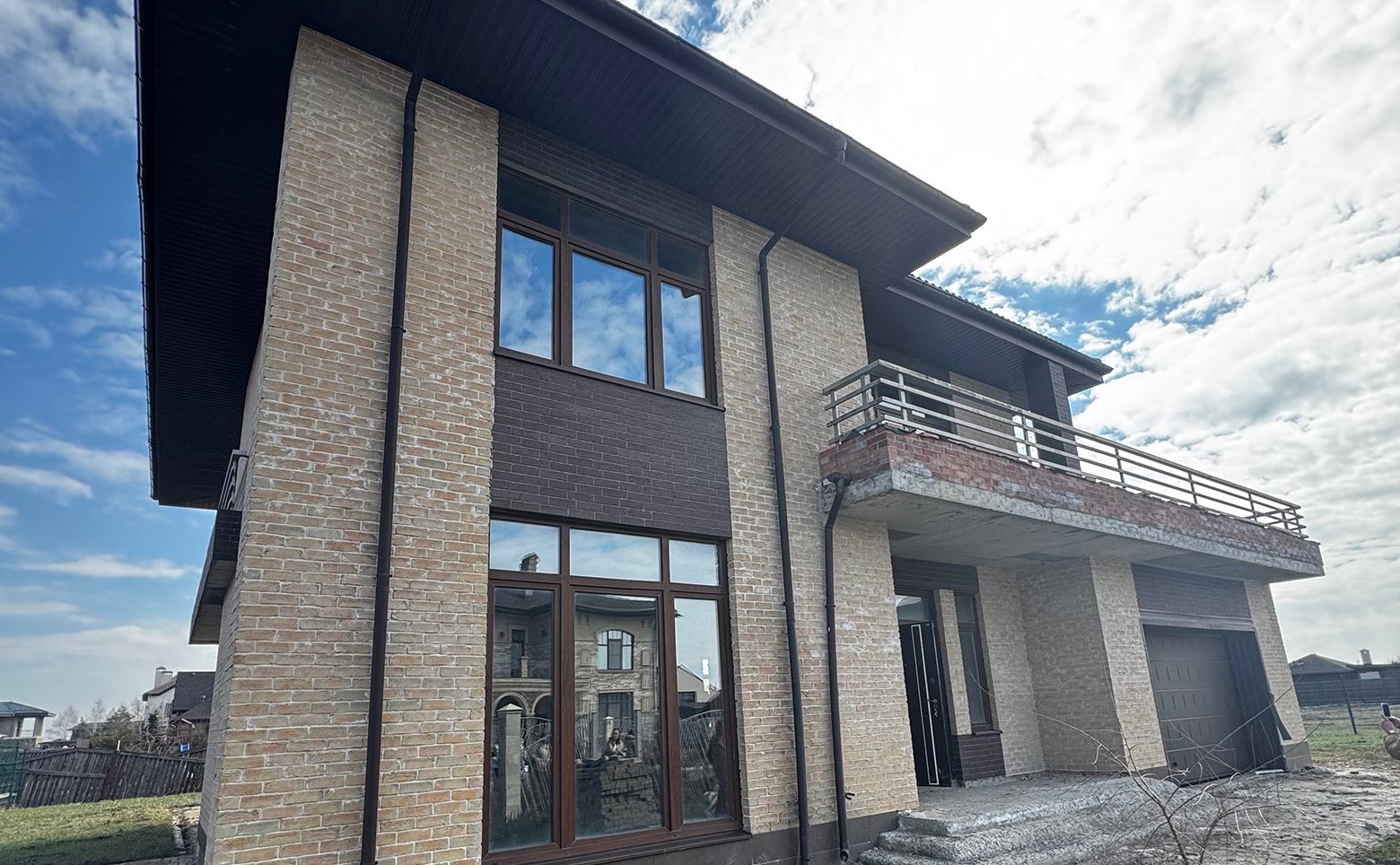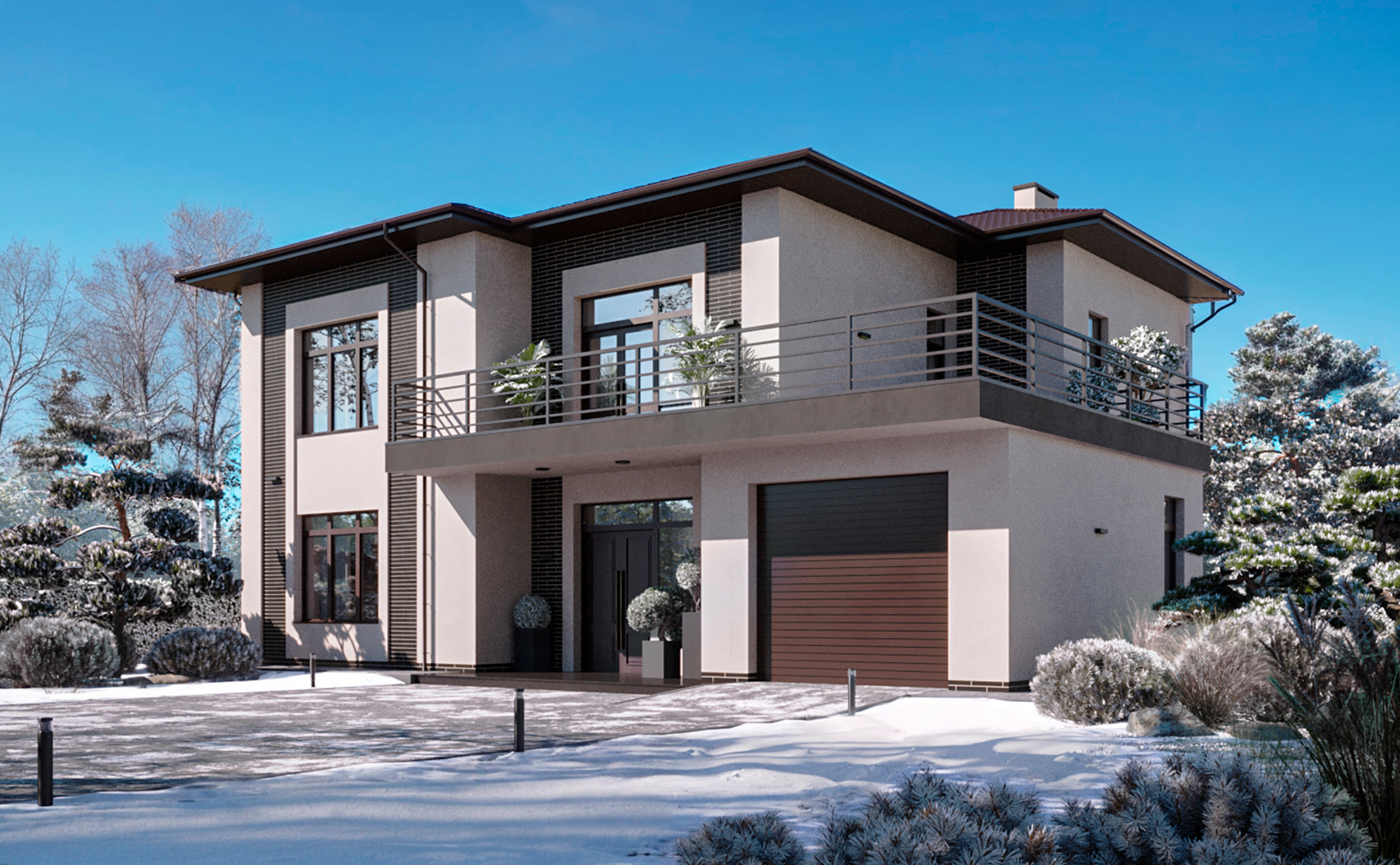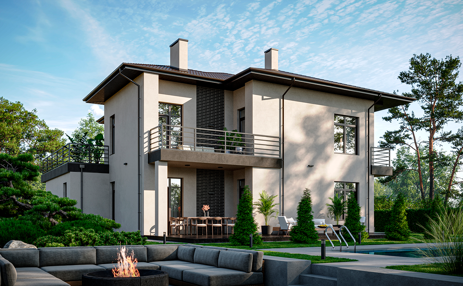 Коттеджный поселок представляет собой малоэтажную застройку с домами в 1 и 2 этажа. Архитектура выполнена в современном стиле с использованием кирпично-монолитной технологии строительства для обеспечения надежности и долговечности конструкции. Предусмотрены варианты фасадов из облицовочного кирпича и комбинированные решения.