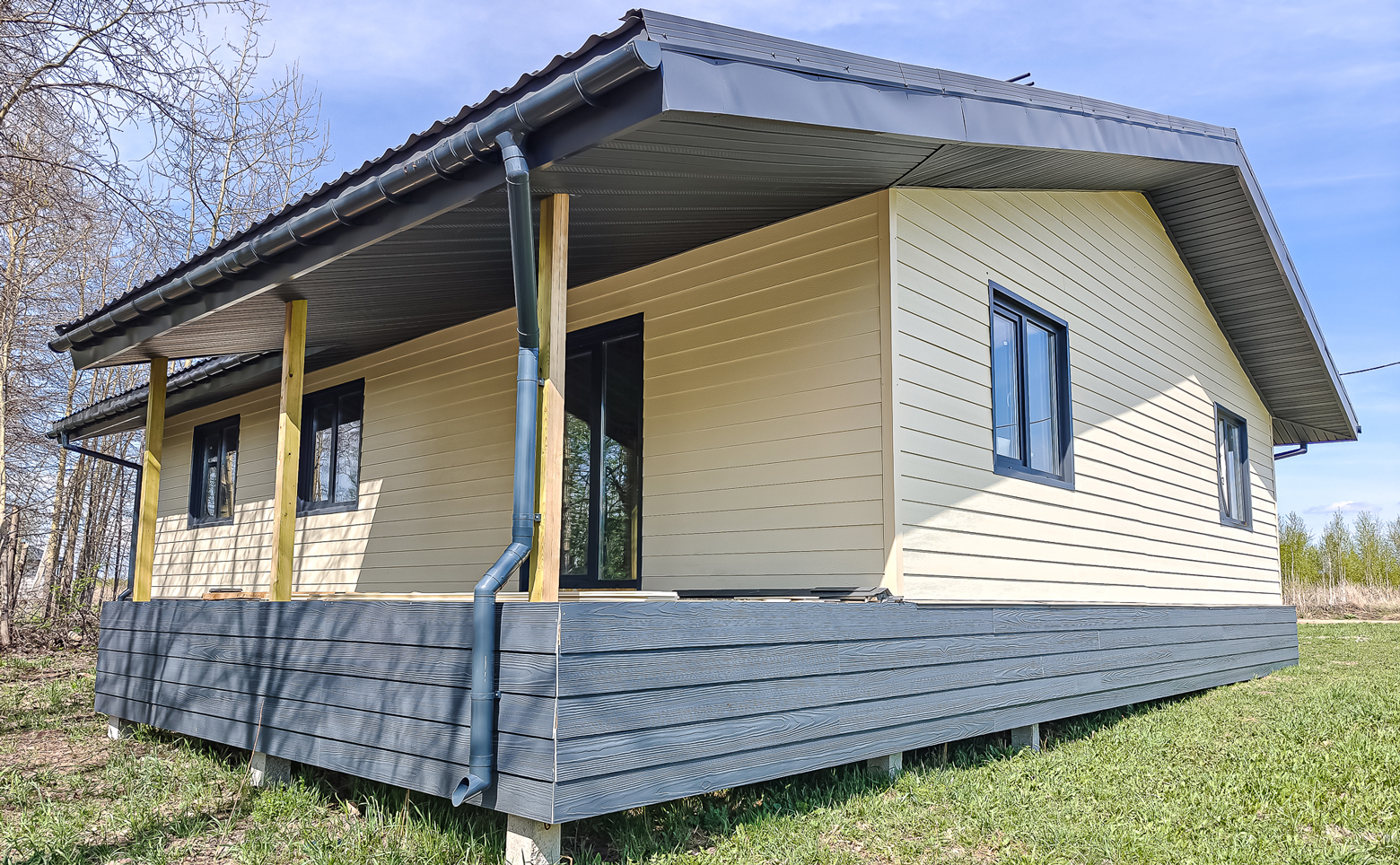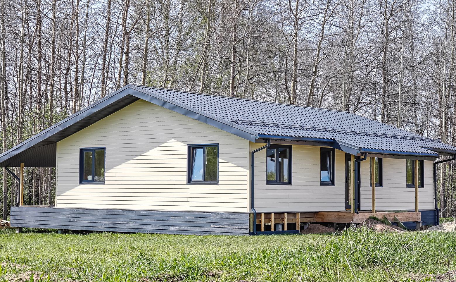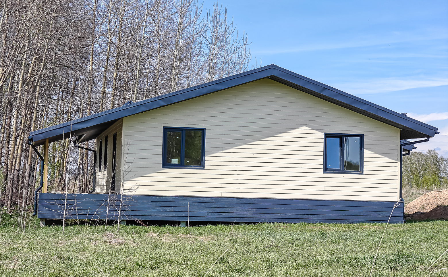 В коттеджном поселке предлагается участок площадью 8 соток с готовым домом от застройщика. Земля имеет статус ДНТ с возможностью постоянной регистрации. Дом возведен по каркасной технологии с вентилируемым фасадом из панелей.