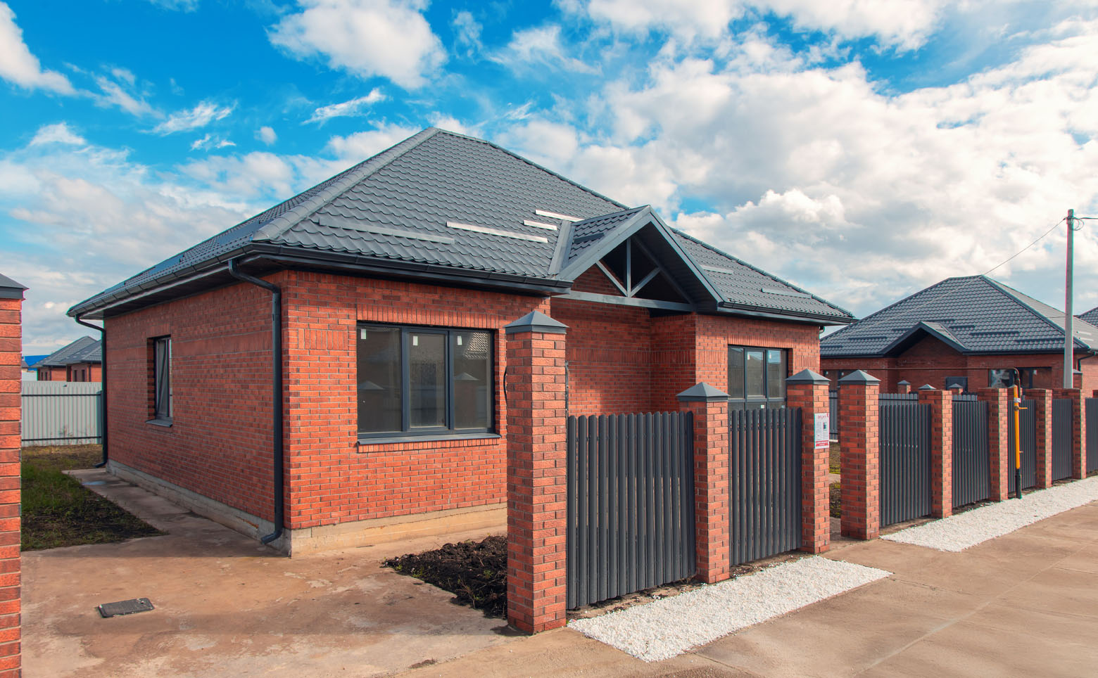 Коттеджи возводятся по 3 типовым проектам: с площадью от 75 до 173 кв. м. Все дома сдаются с газом, скважиной и септиком, с подчистовой отделкой и высотой потолков 3 метра.